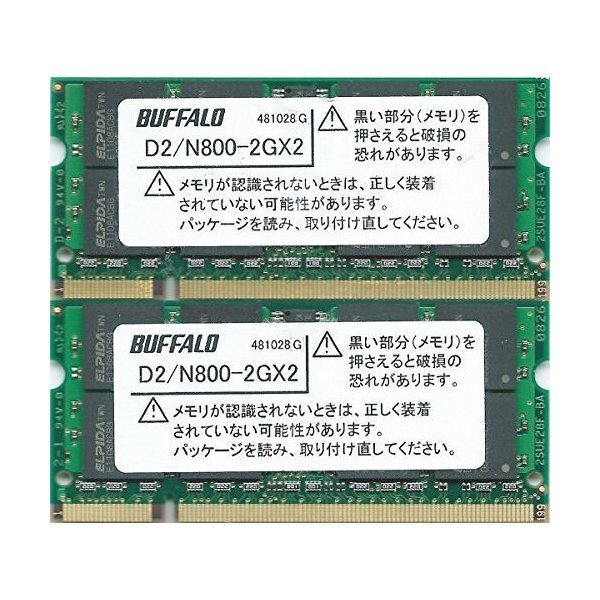 中古動作品★ノート用メモリ BUFFALO PC2-6400S DDR2/N800 2GB 2枚 計4G★送料無料初期保障