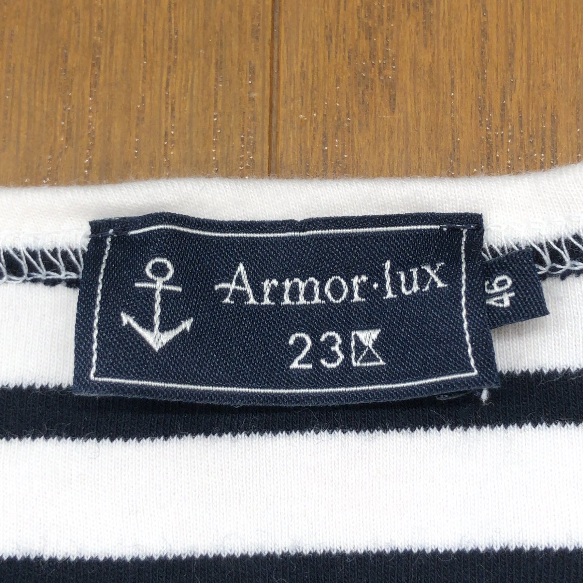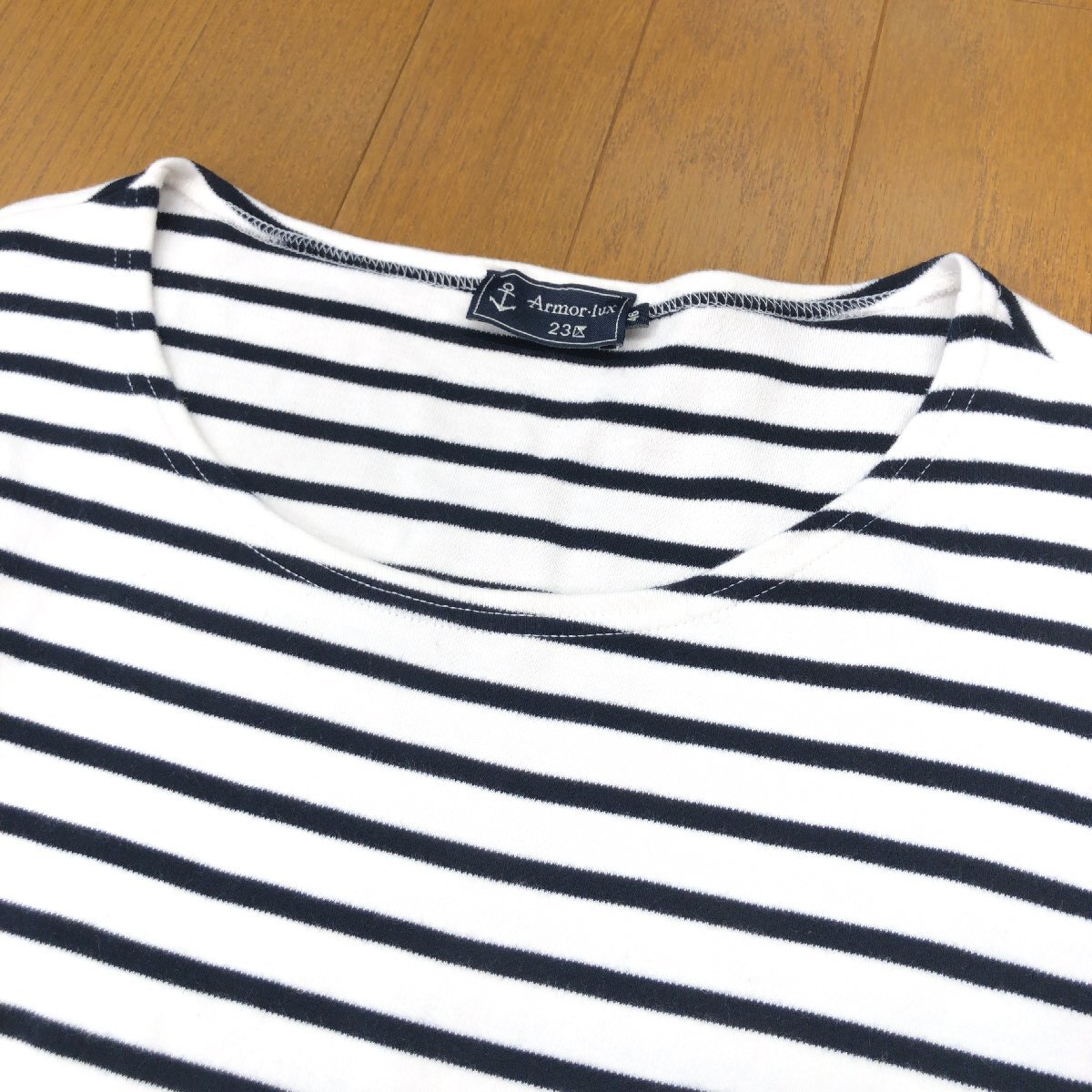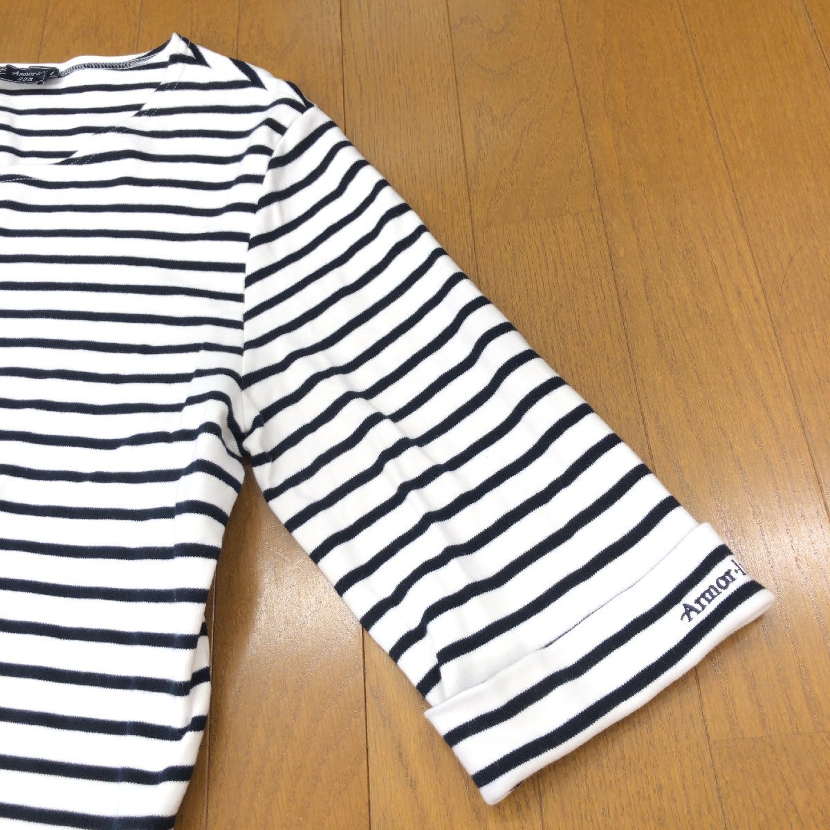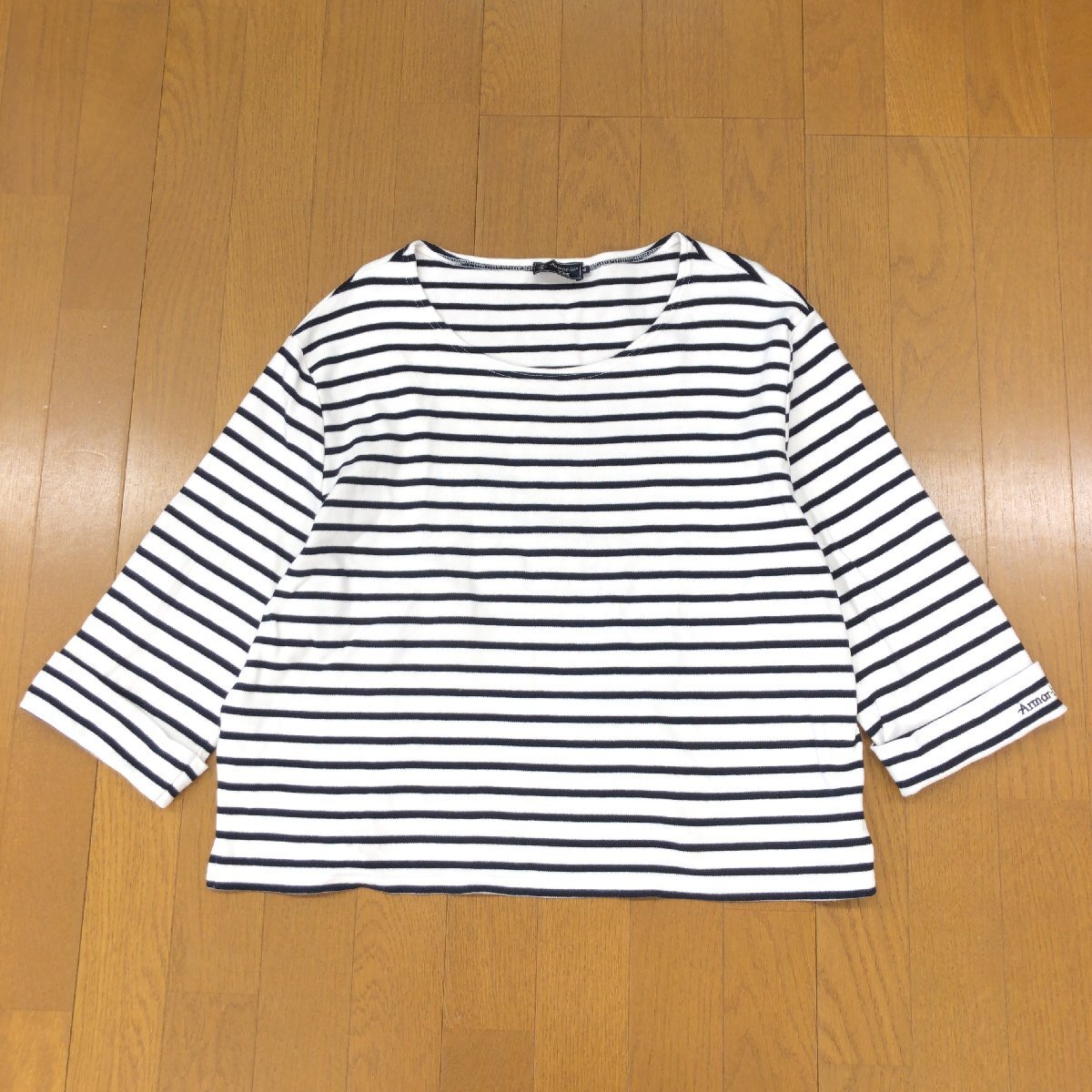 美品 23区×Armor-lux ニジュウサンク アルモリュクス 定価15,950円 5分袖 ボーダー カットソー 46(3XL) 白×黒 ロンT 4L ゆったり Tシャツ