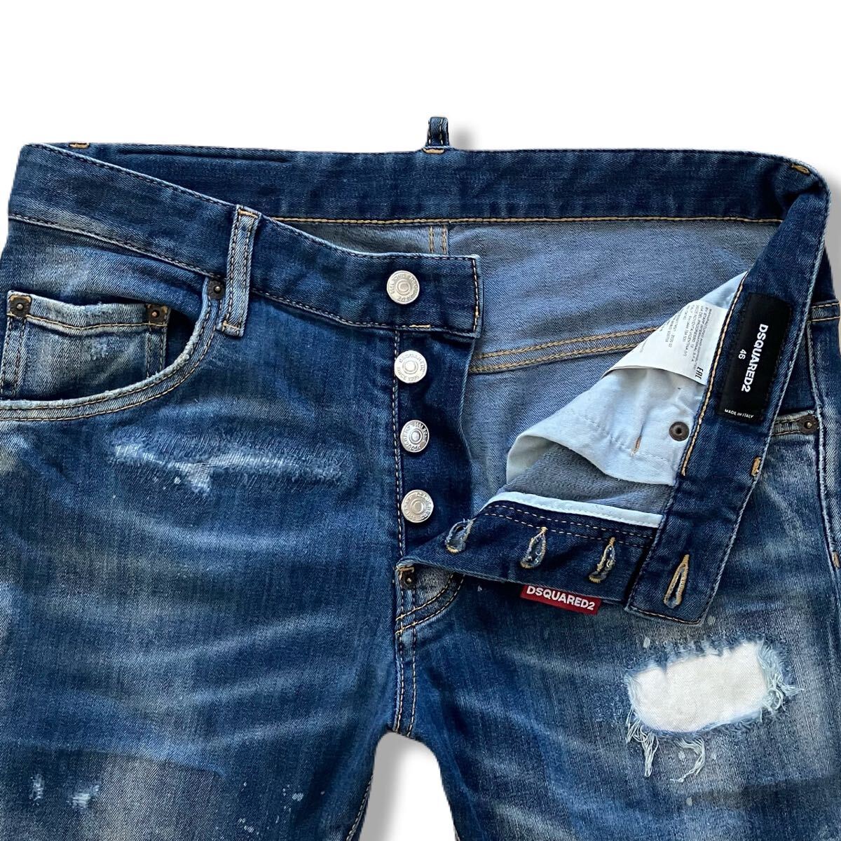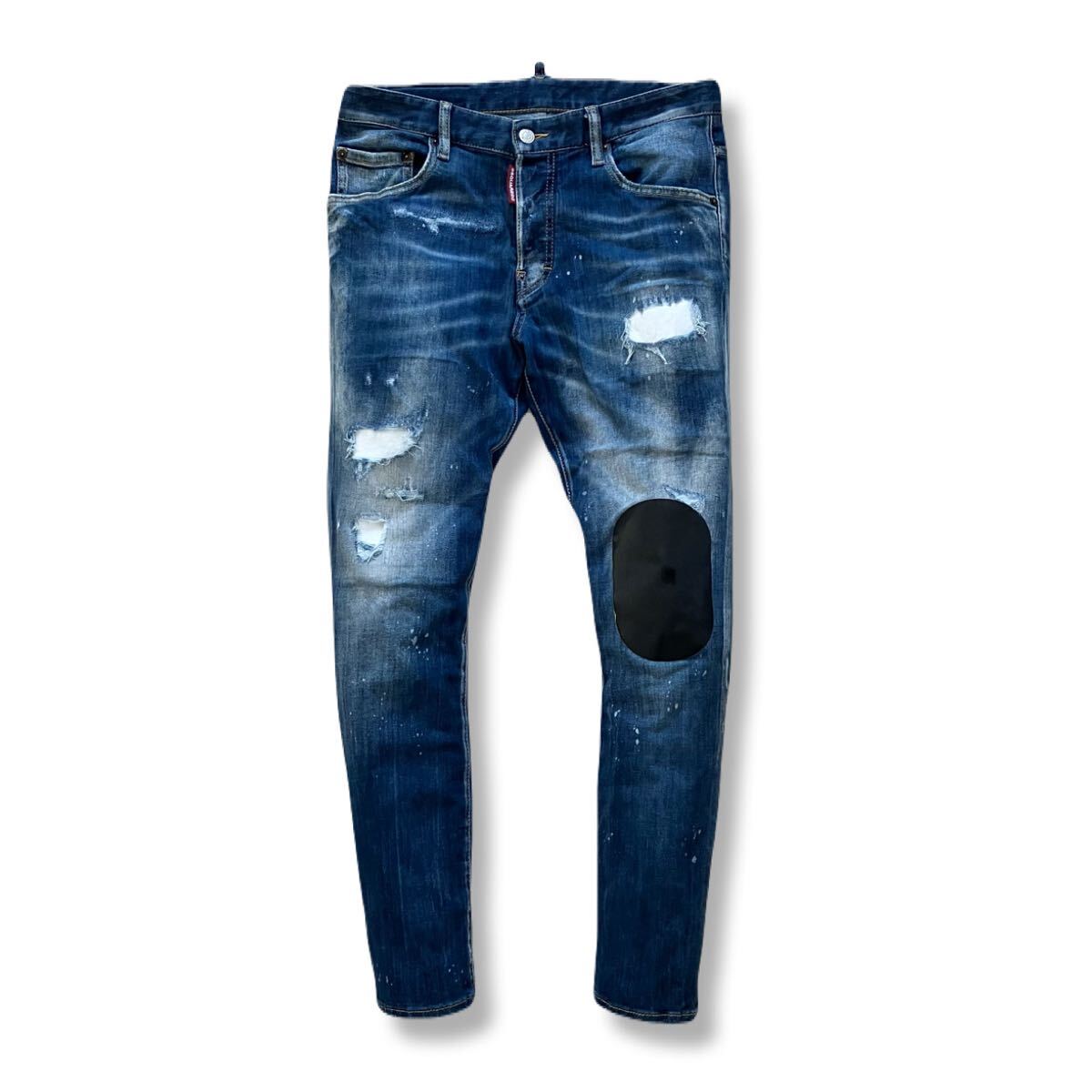 ハードなクラッシュ加工と色落ちのバランスが絶妙で、穿くだけで存在感のあるスタイルに仕上がります。
