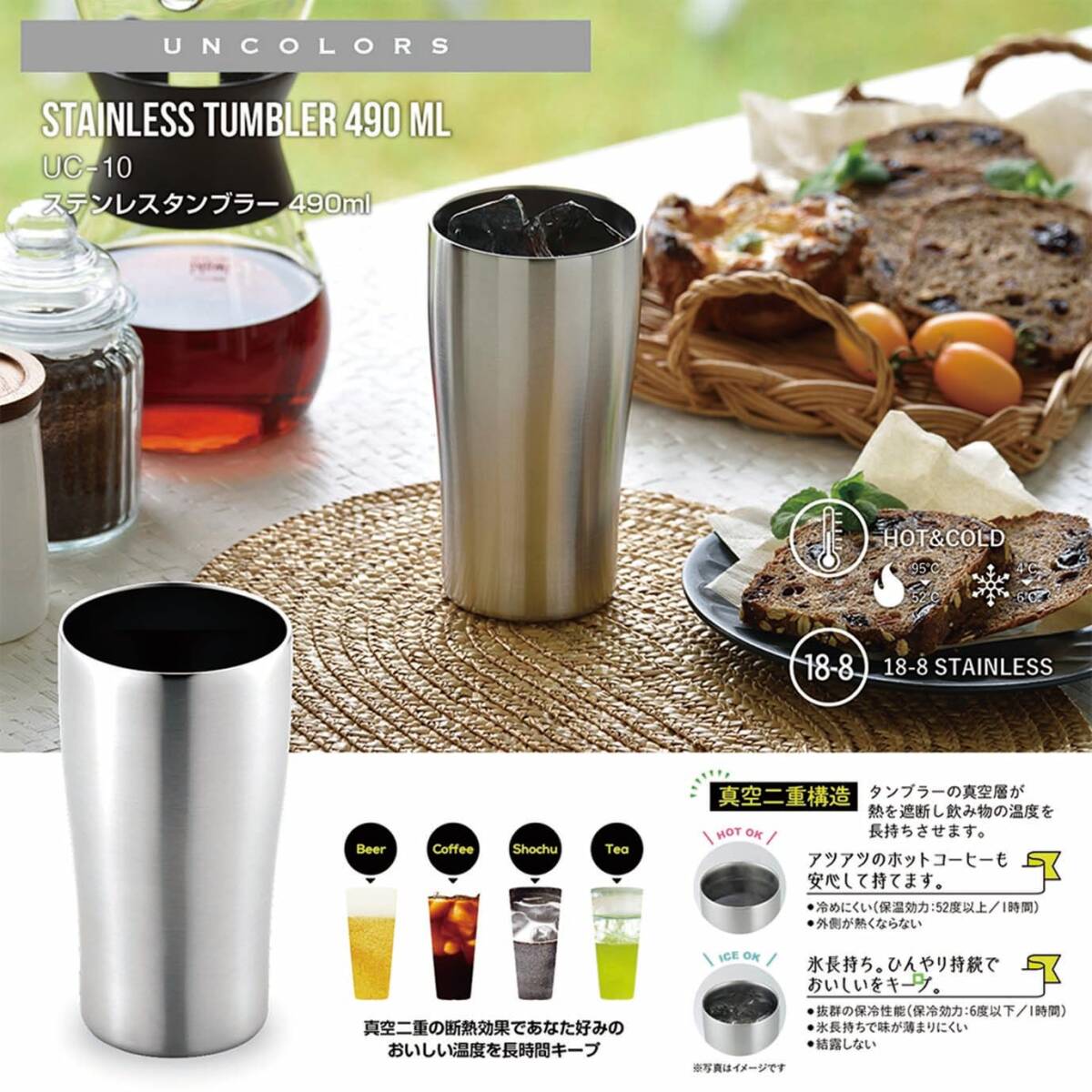 カクセー 真空二重 ステンレスタンブラー 490ml 真空二重構造 保温 保冷 シンプルデザイン アンカラーズ UC-10