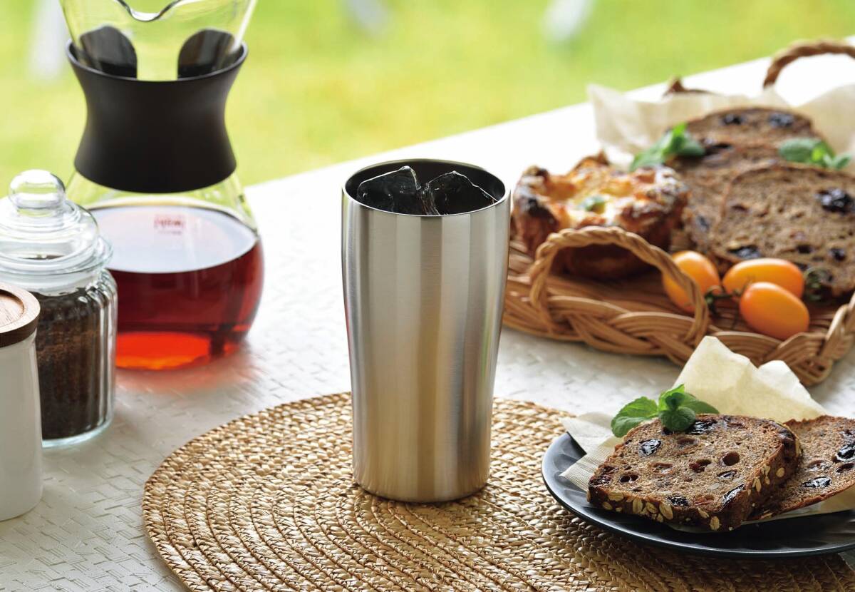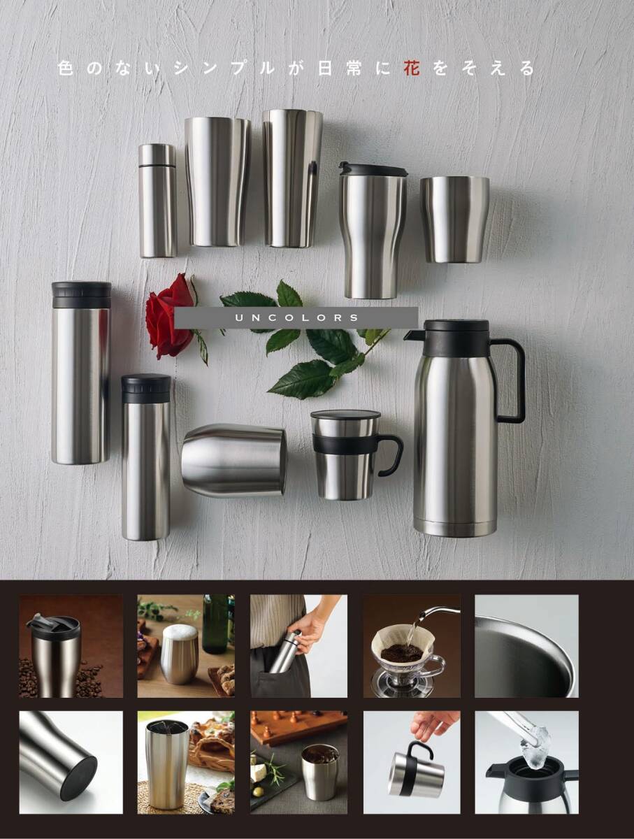 【UNCOLORS(アンカラーズ)】選べるカタチ。真空二重×シンプルデザイン。 タンブラーの真空層が熱を遮断し、飲み物の温度を長持ちさせます。 アツアツのコーヒーも安心して持てます。 氷長持ち。ひんやり持続でおいしさをキープ。