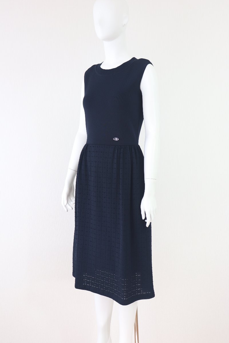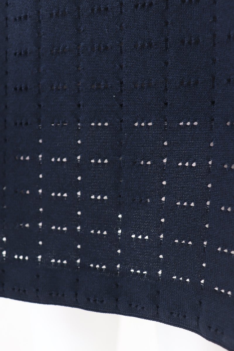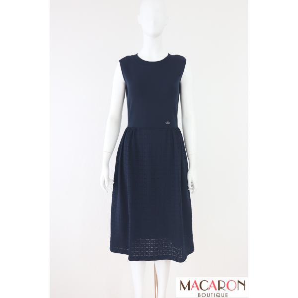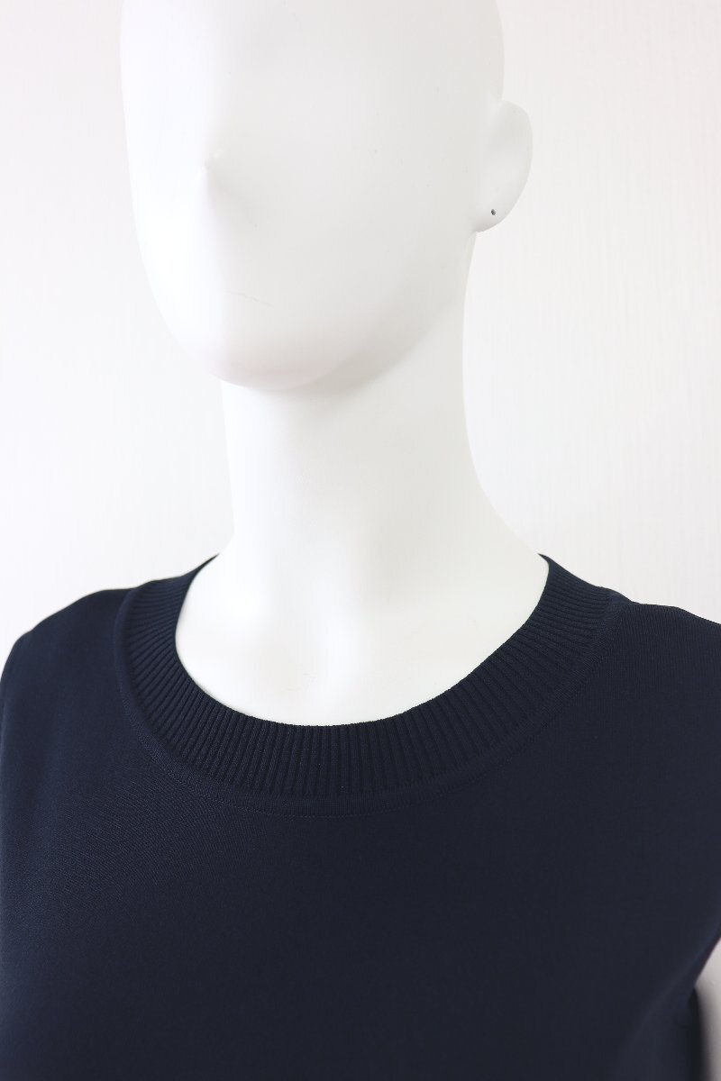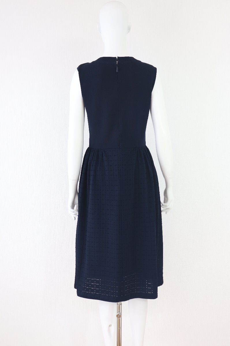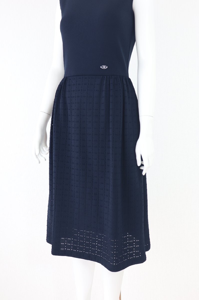コメント | アセテートナイロンニット素材、スカート部分に透け感のあるノースリーブのニットワンピースです。2023年商品 |