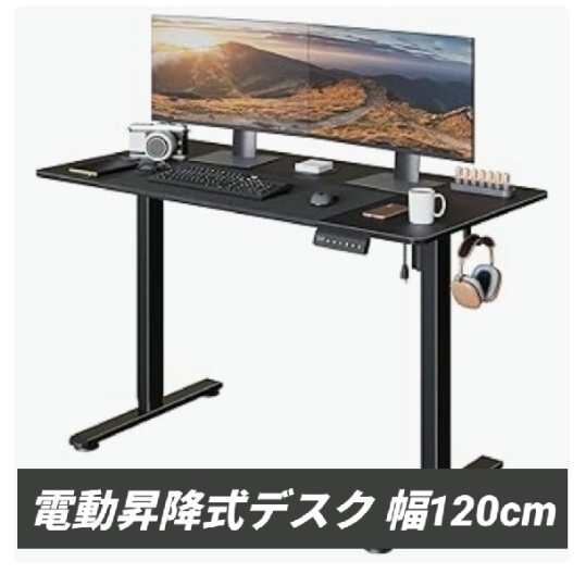 電動 オフィスワークテーブル スタンディングデスク 昇降式デスク 高さメモリー機能 静音 収納フック付き 上下昇降デスク テレワーク 在宅ワーク 幅120 x 奥行き60 x 高さ72-120cm