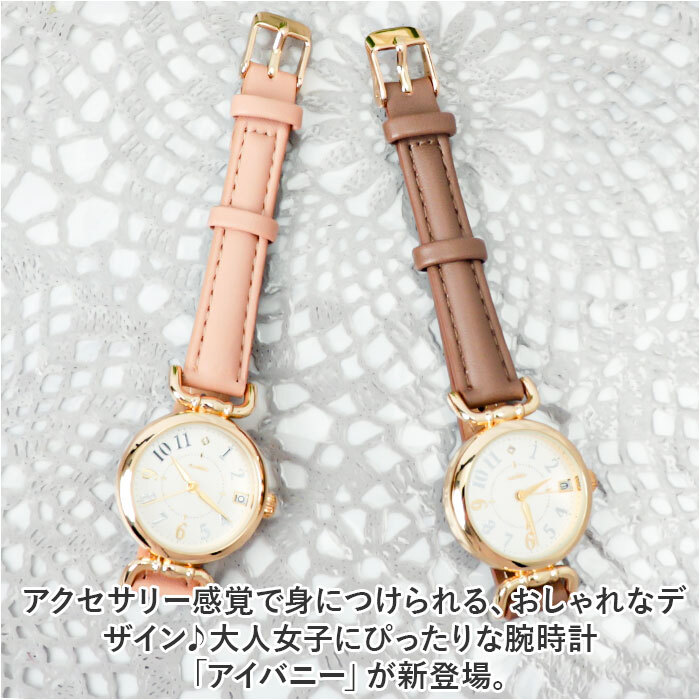 | 商品説明 | ・・アクセサリー感覚で身につけられる、おしゃれなデザイン♪大人女子にぴったりな腕時計「アイバニー」が新登場。 ・【アンティーク感のある仕上がり】 ・どこか懐かしくも上品さを残したアイテム。程よく存在感のある文字盤や、ベルトと文字盤をつなぐパーツデザインがポイント。 ・【こだわりの文字盤】 ・ゴールド&シルバーカラーの数字や、12時の位置に配置されたストーンがキラッと輝く☆文字盤ケース横のつまみで、簡単に時刻調節が可能。 ・【便利なデイト表示機能】 ・・3時の位置に配置された小窓で日付を確認OK。ビジネスシーンでも重宝。 ・【自分サイズにフィット】 ・ベルトは7段階長さ調節OK。女性の華奢な手元にマッチするよう細めに設計されており、付け心地軽やか。 ・【安心の日本製ムーブメント】 ・ムーブメントは高い性能を誇る日本製。秒針が1秒刻みで動くステップ運針。 ・【オン・オフ問わず活躍】 ・どんなスタイルにもマッチするデザインが魅力。お気に入りのベルトカラーをチョイスして♪ |