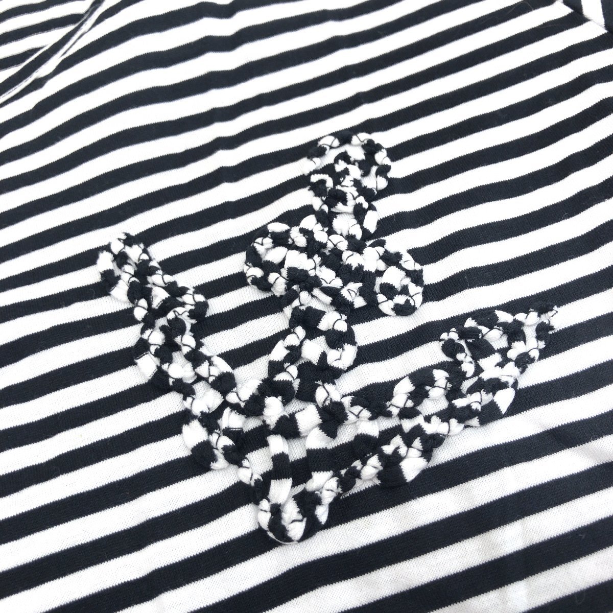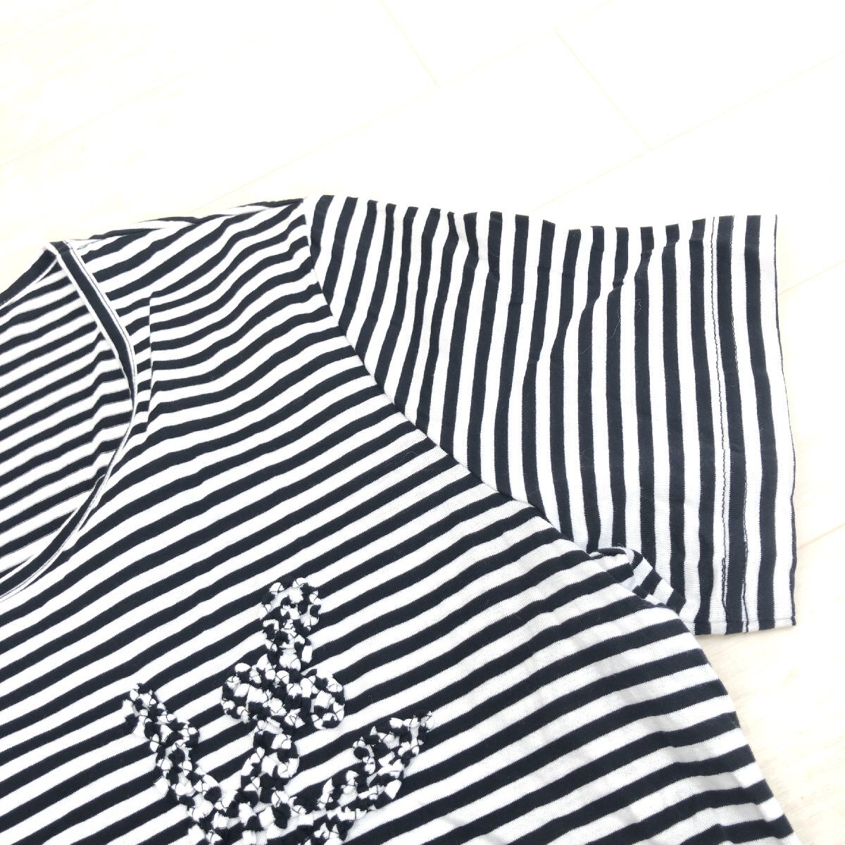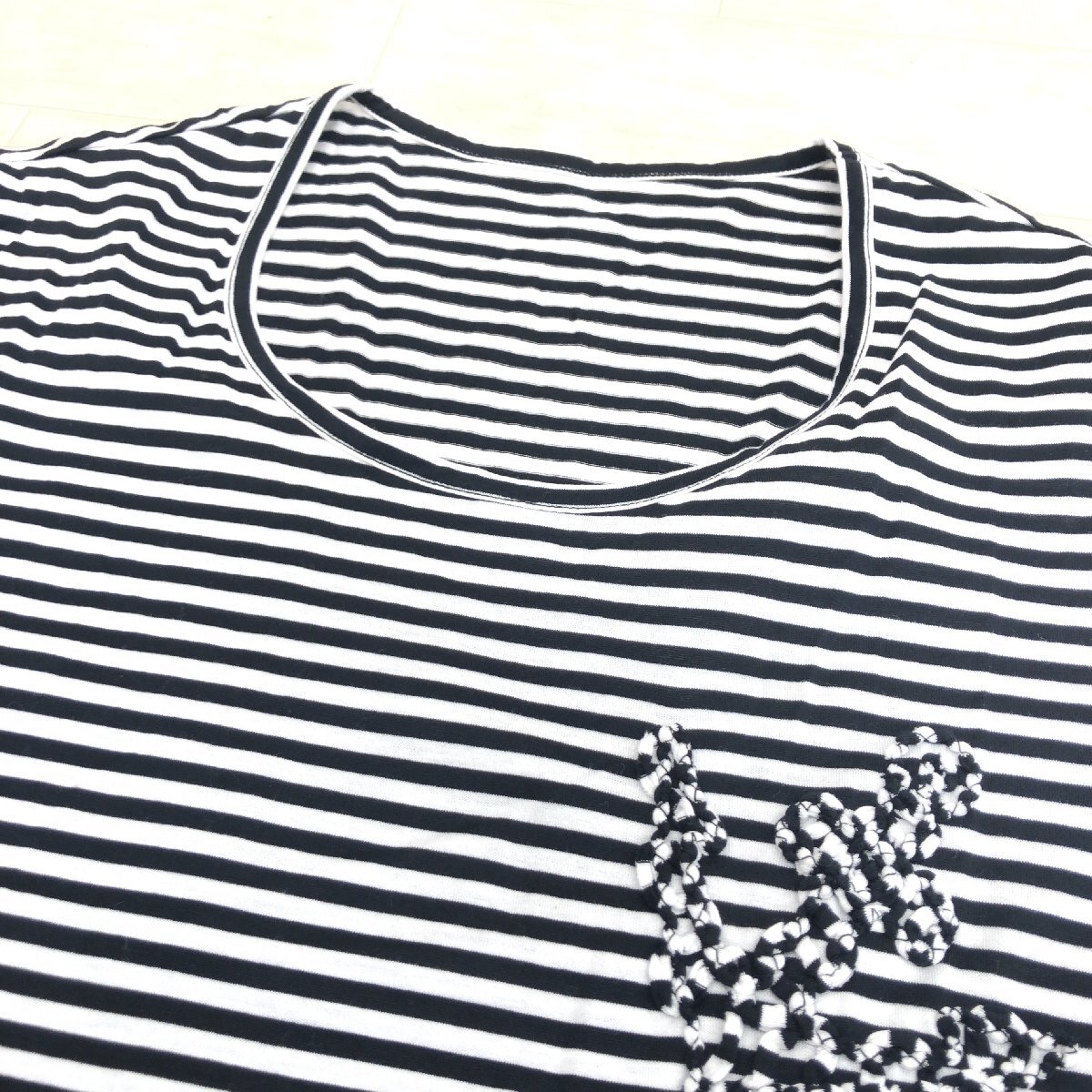 美品 CARA O CRUZ キャラオクルス コットン100% ラウンドネック ボーダー カットソー 9(M) 白×黒 日本製 Tシャツ 半袖 婦人 レリアン