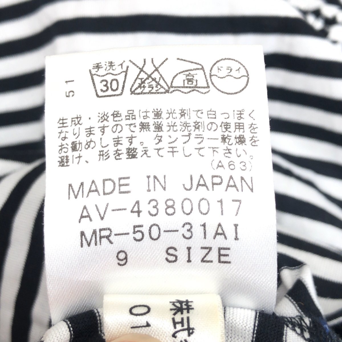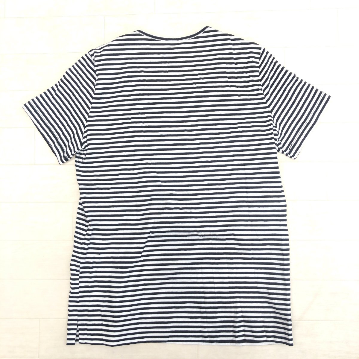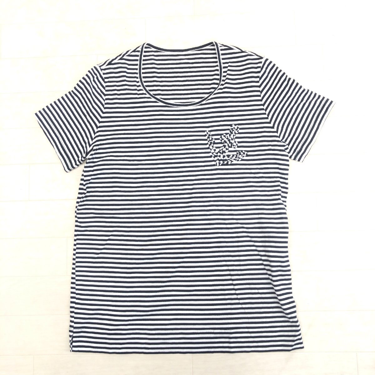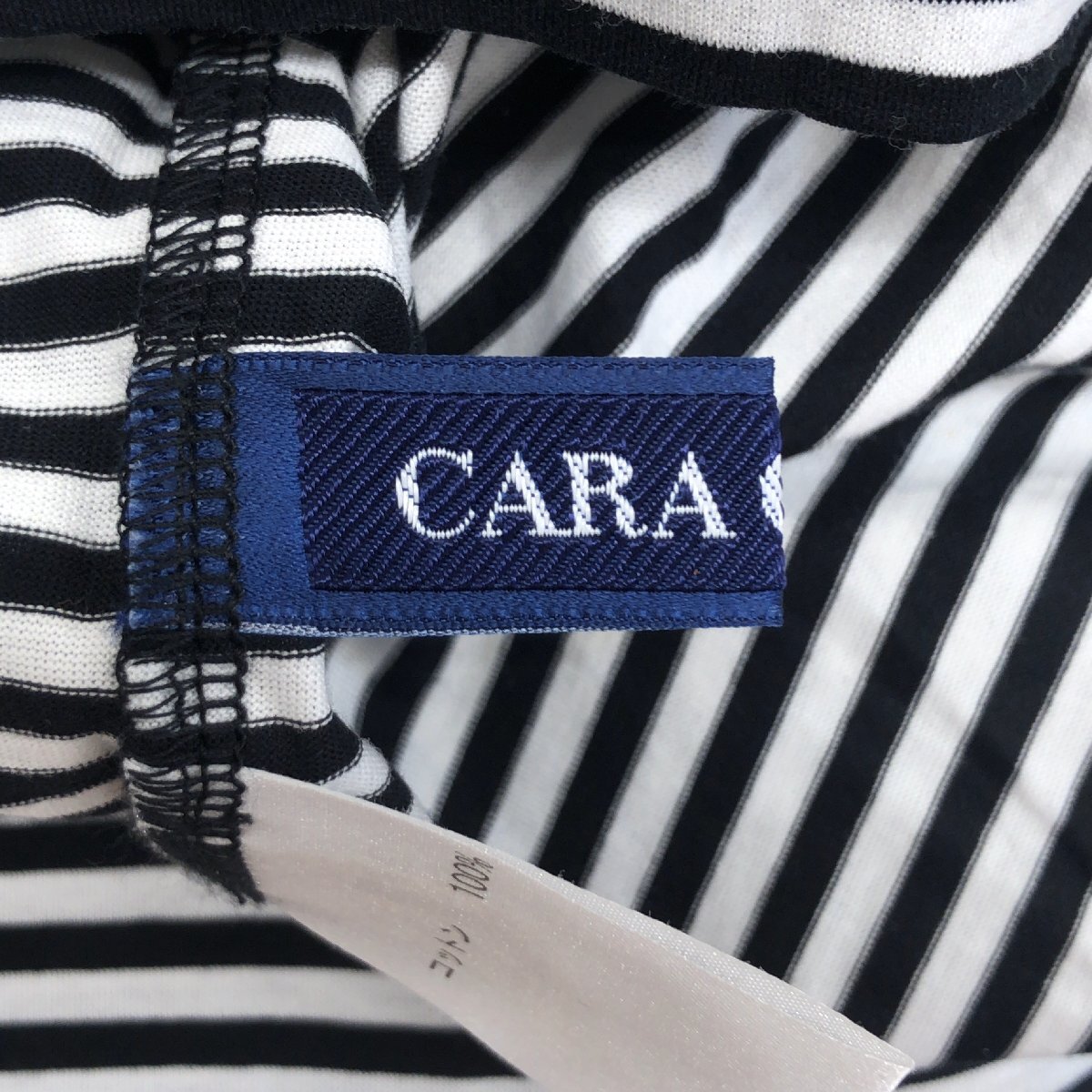 美品 CARA O CRUZ キャラオクルス コットン100% ラウンドネック ボーダー カットソー 9(M) 白×黒 日本製 Tシャツ 半袖 婦人 レリアン