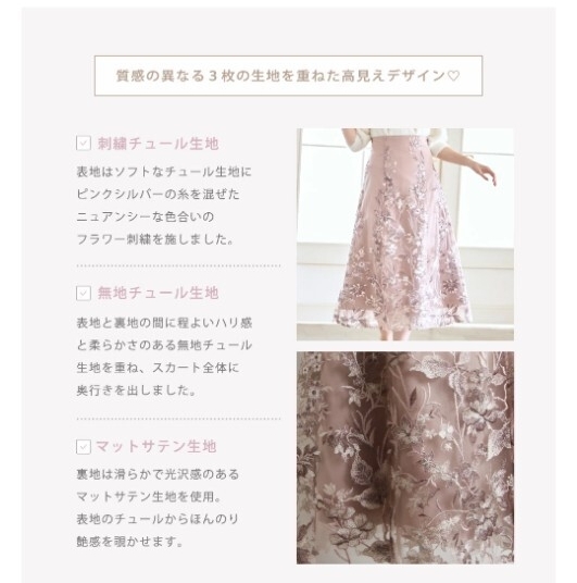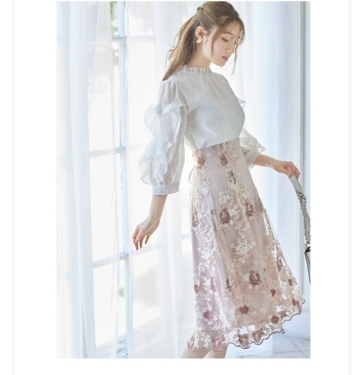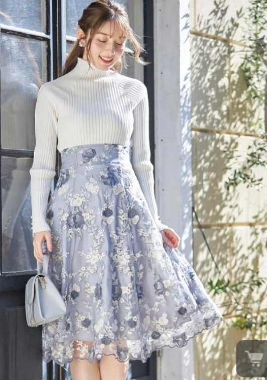 シンプルなトップスと合わせるだけで瞬時に華やぐ1着です。