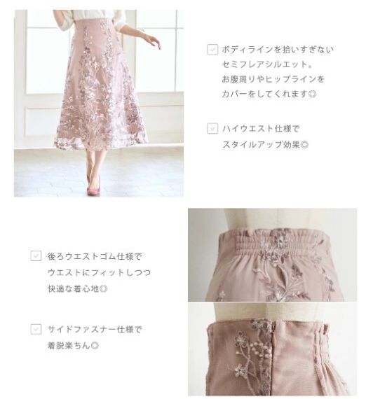 広がりすぎない上品なフレアシルエット+ミモレ丈で