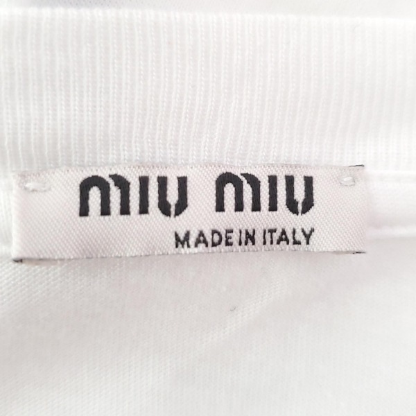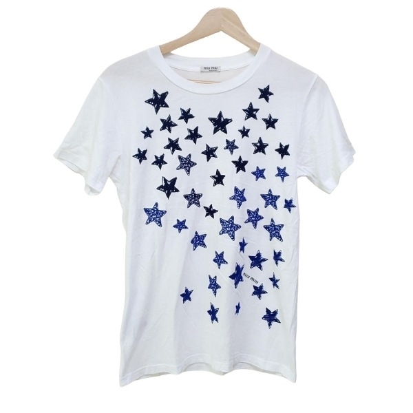 ミュウミュウ miumiu 半袖Tシャツ サイズS - 白×ネイビー×ブルー レディース クルーネック/スター(星) 美品 トップス