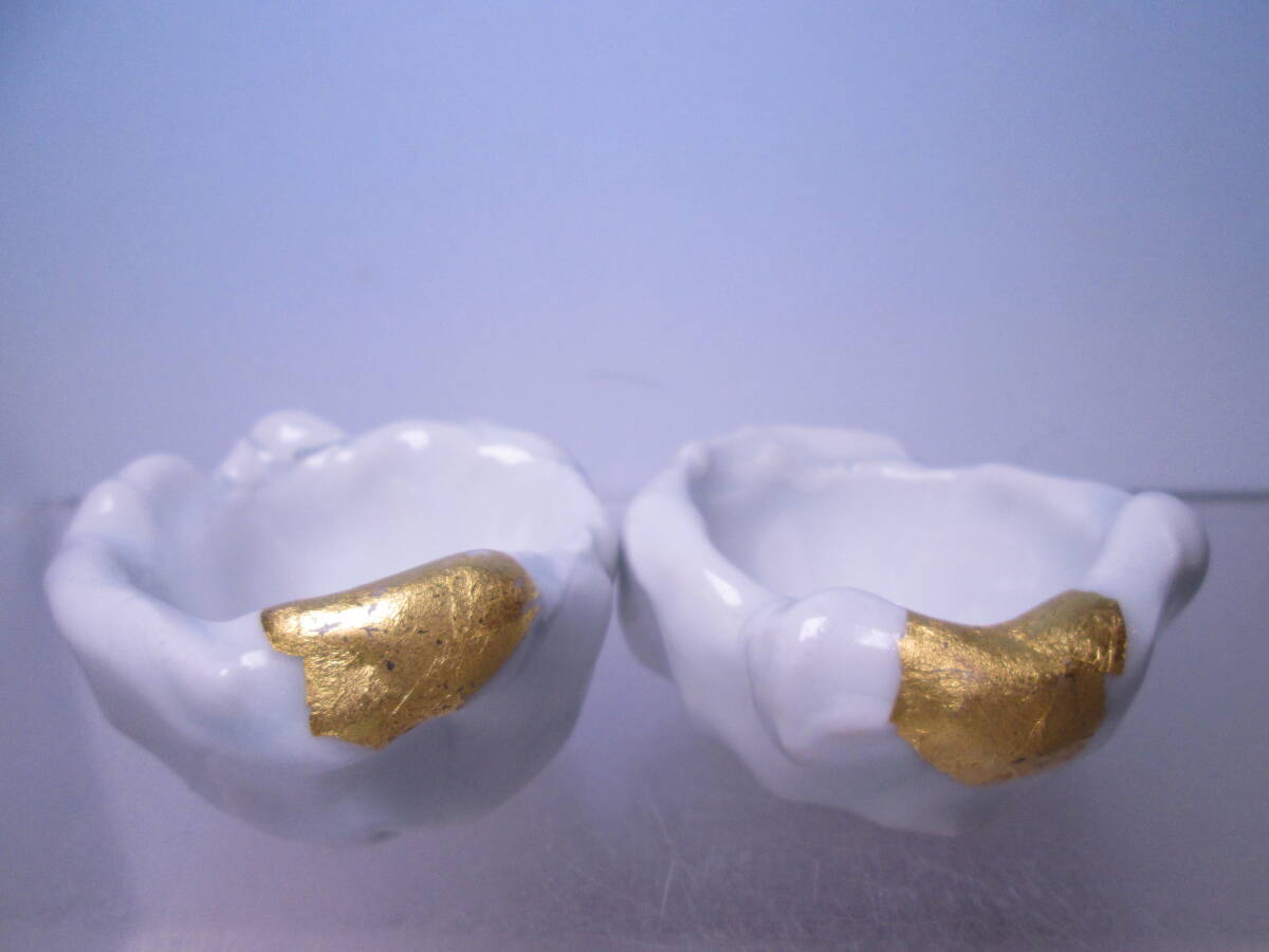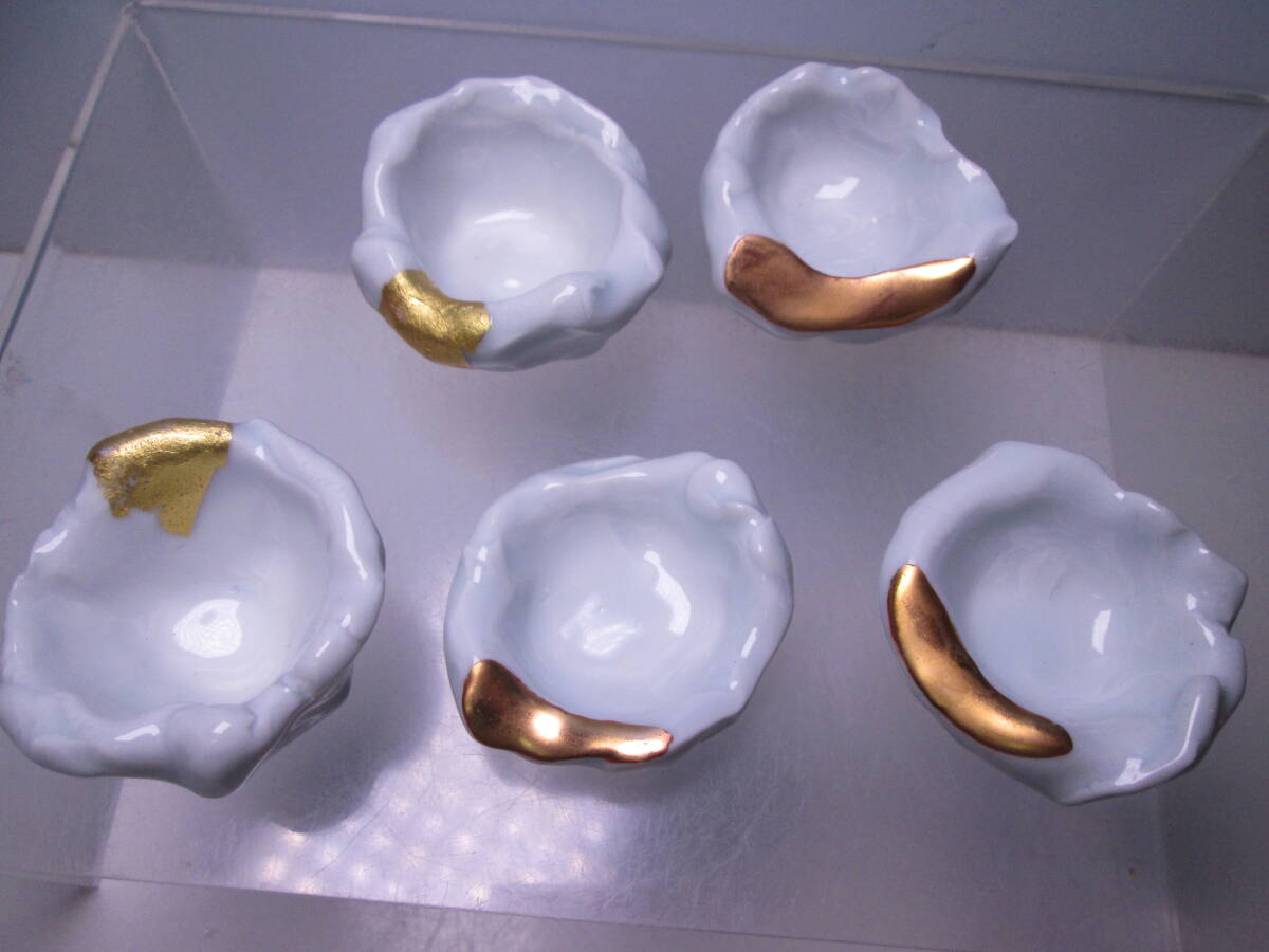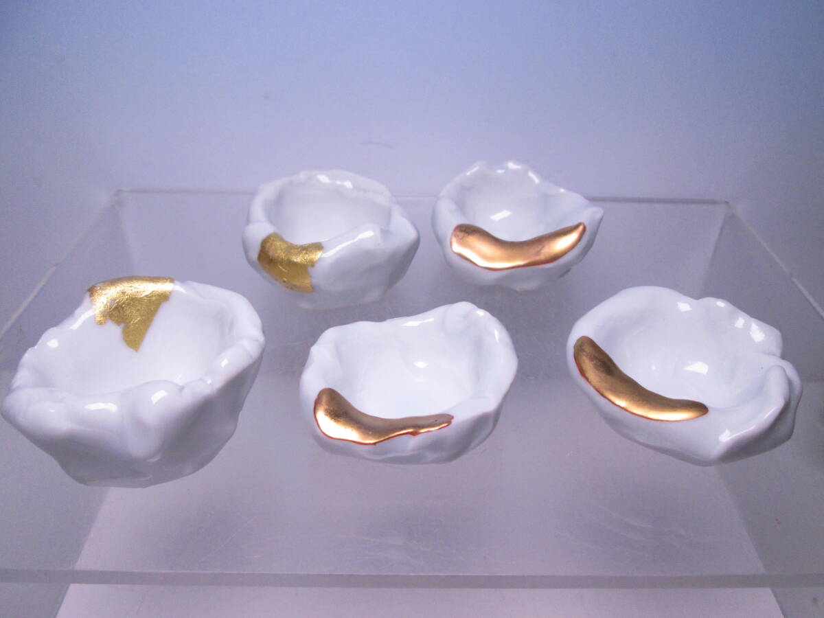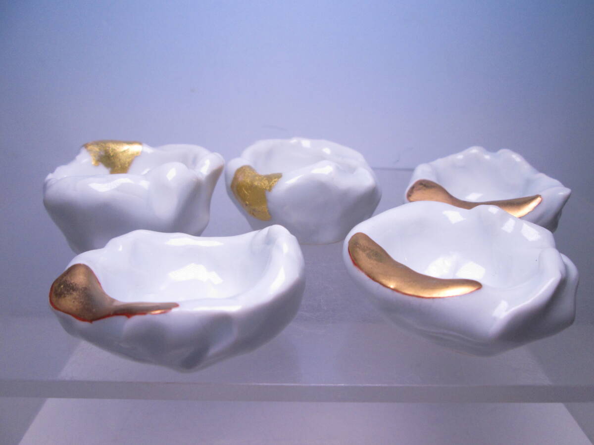 ☆お料理屋さんの器 在銘 金彩白磁 珍味入れ 五客 豆小鉢/懐石/割烹/日本料理