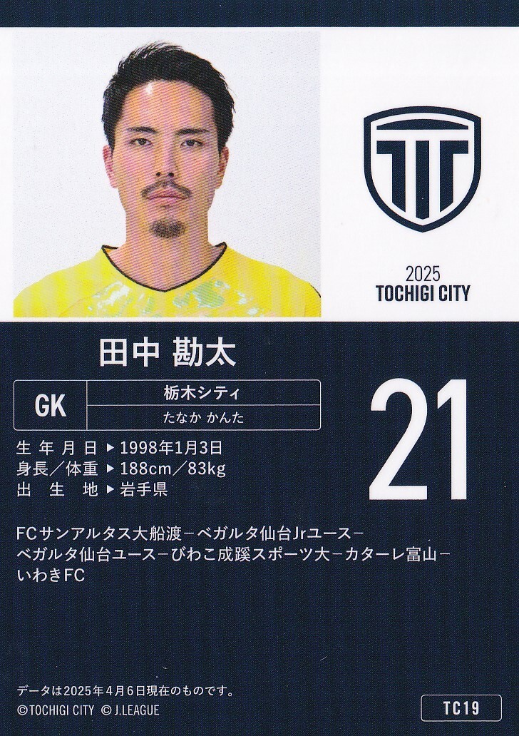 栃木シティ 2025 オフィシャル TC19 田中勘太