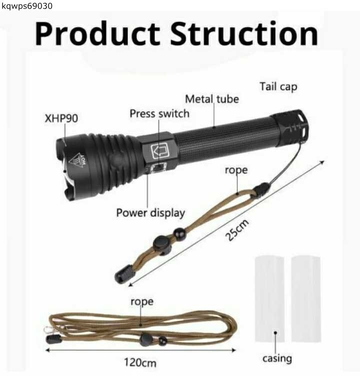 高品質 懐中電灯 150000 ルーメン XHP70.2 超強力 led xhp50 18650 充電式 ハンドライト タイプD