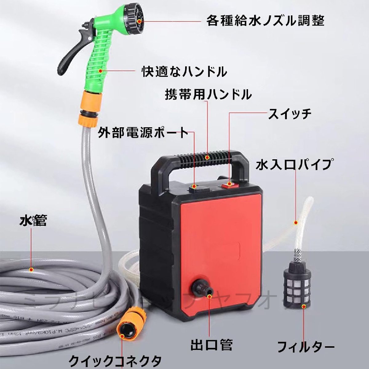 自吸式ウォーターポンプ ポータブル 給水ポン 排水ポンプ 8L/min コードレス 農業・園芸用の排水・灌水などに最適 10m水管+電池2個