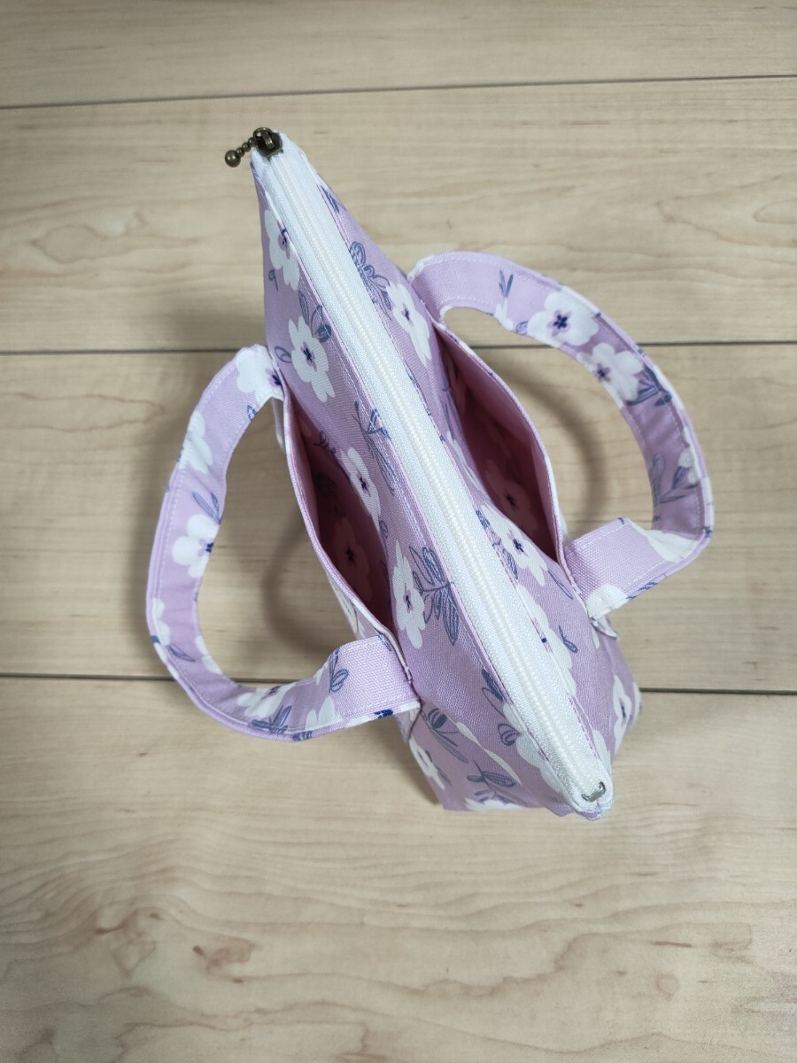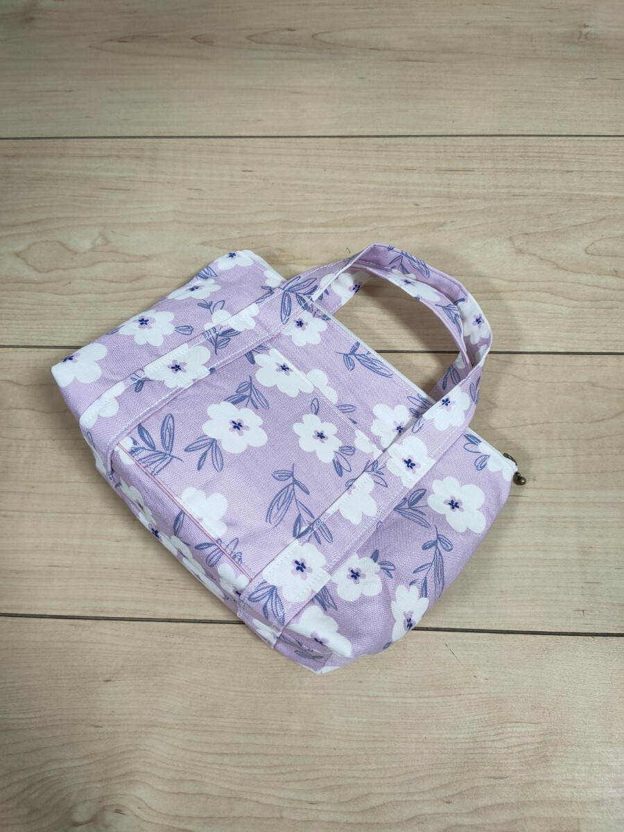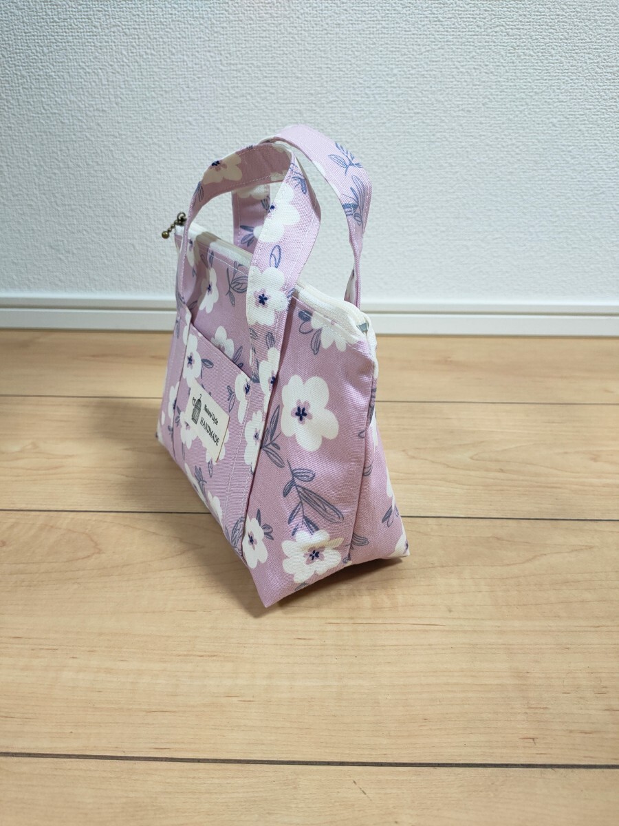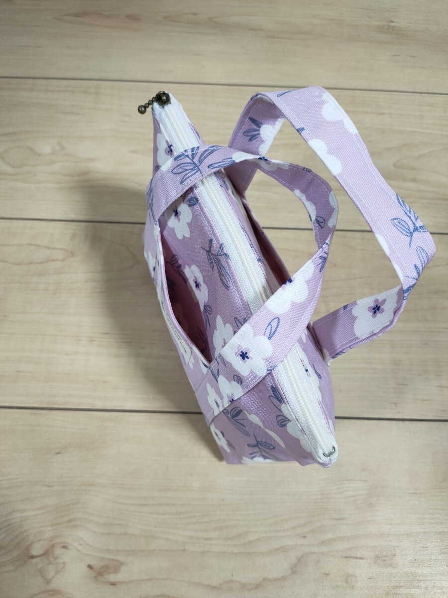 花柄のバッグ型のマチ付きファスナーポーチです。