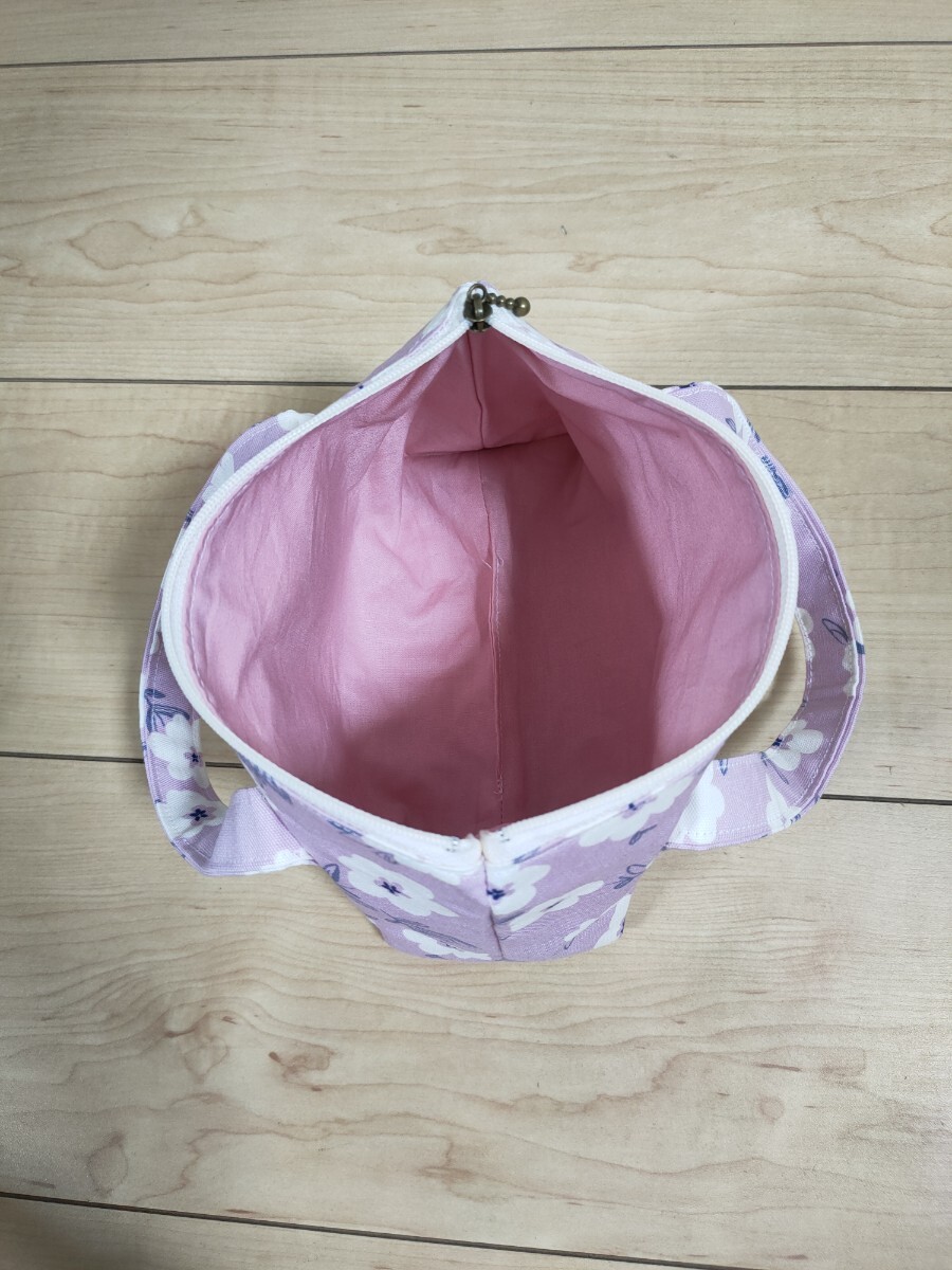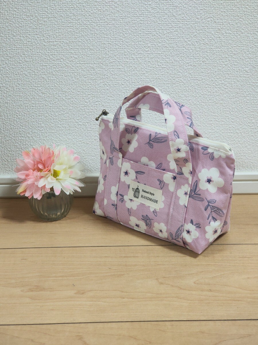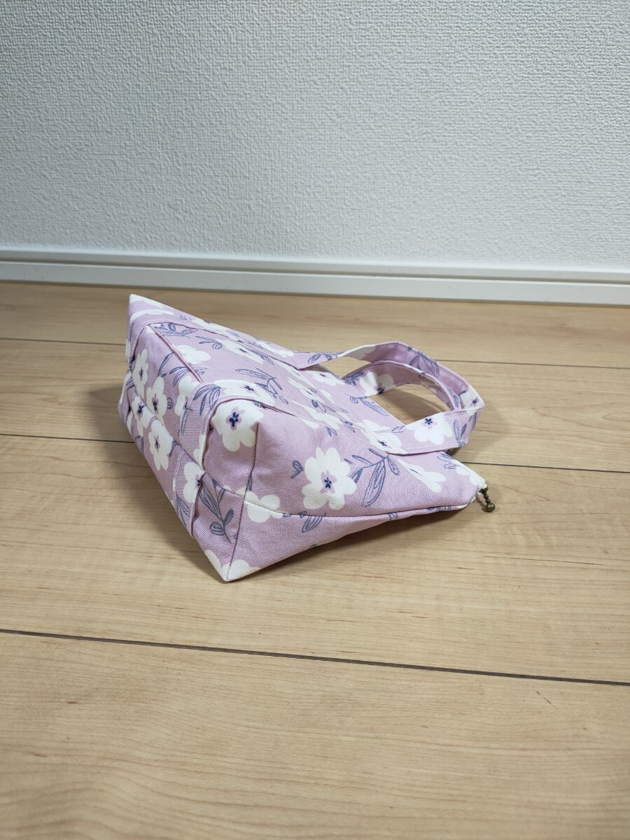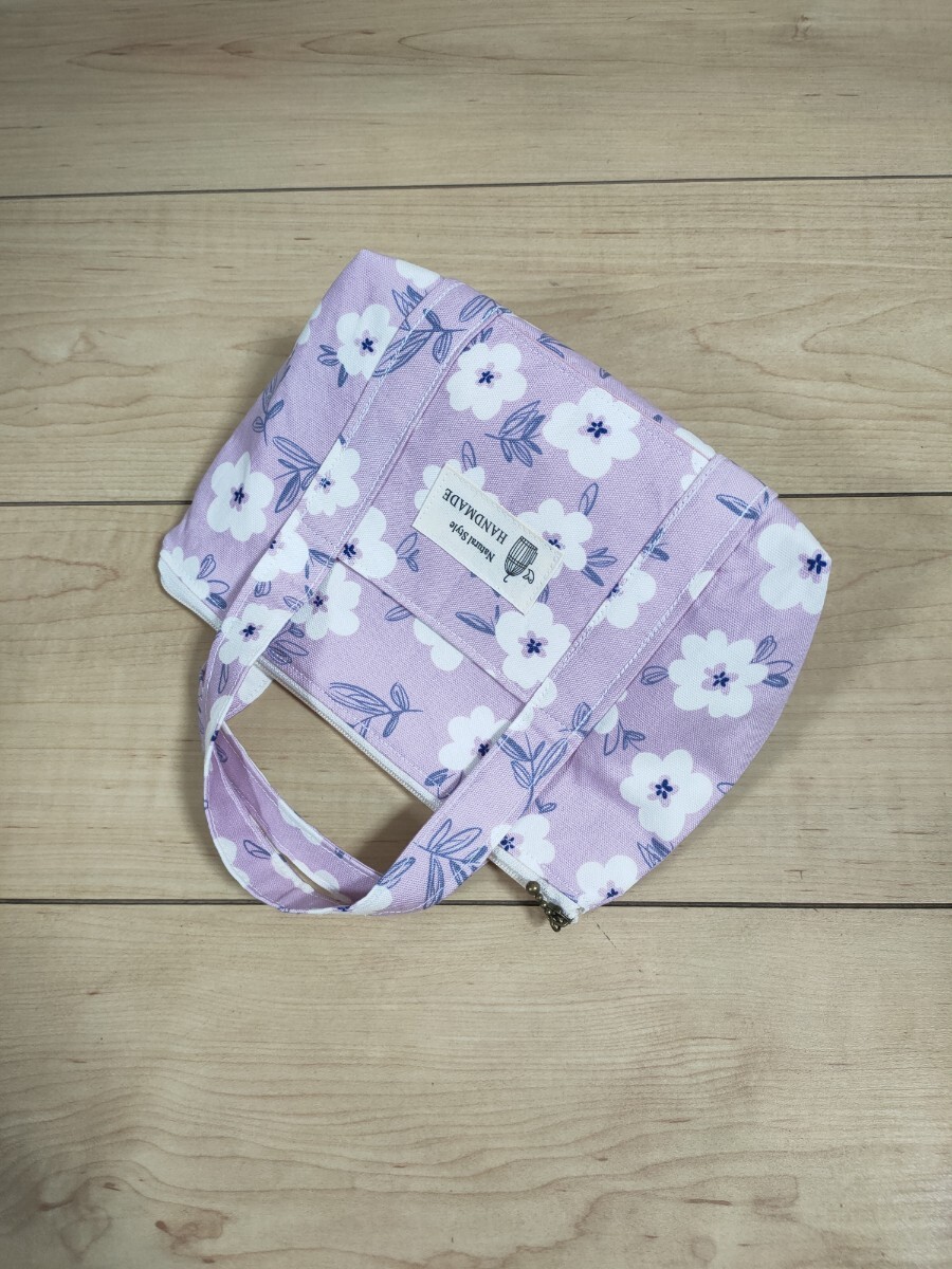 花柄のバッグ型のマチ付きファスナーポーチです。