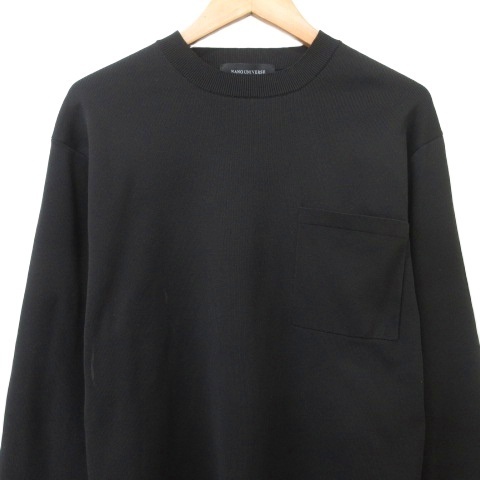 ナノユニバース nano universe 美品 23AW 長袖 ニット カットソー 胸ポケット S 黒 ブラック A0815 メンズ
