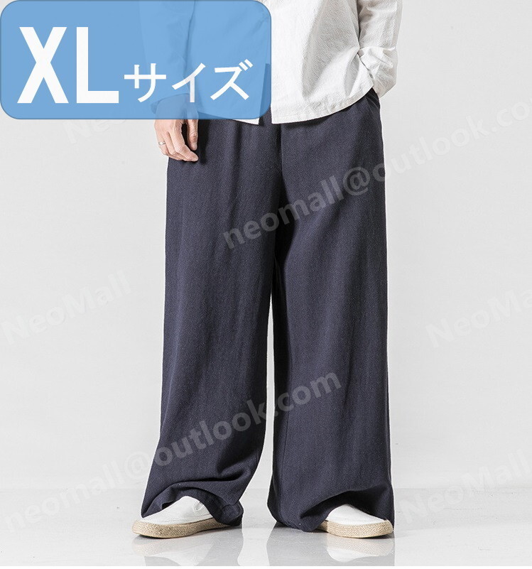 お買い得☆メンズ ワイドパンツ ネイビー XL カジュアル ロングパンツ スウェット 無地 ポケット付 オールシーズン【064】