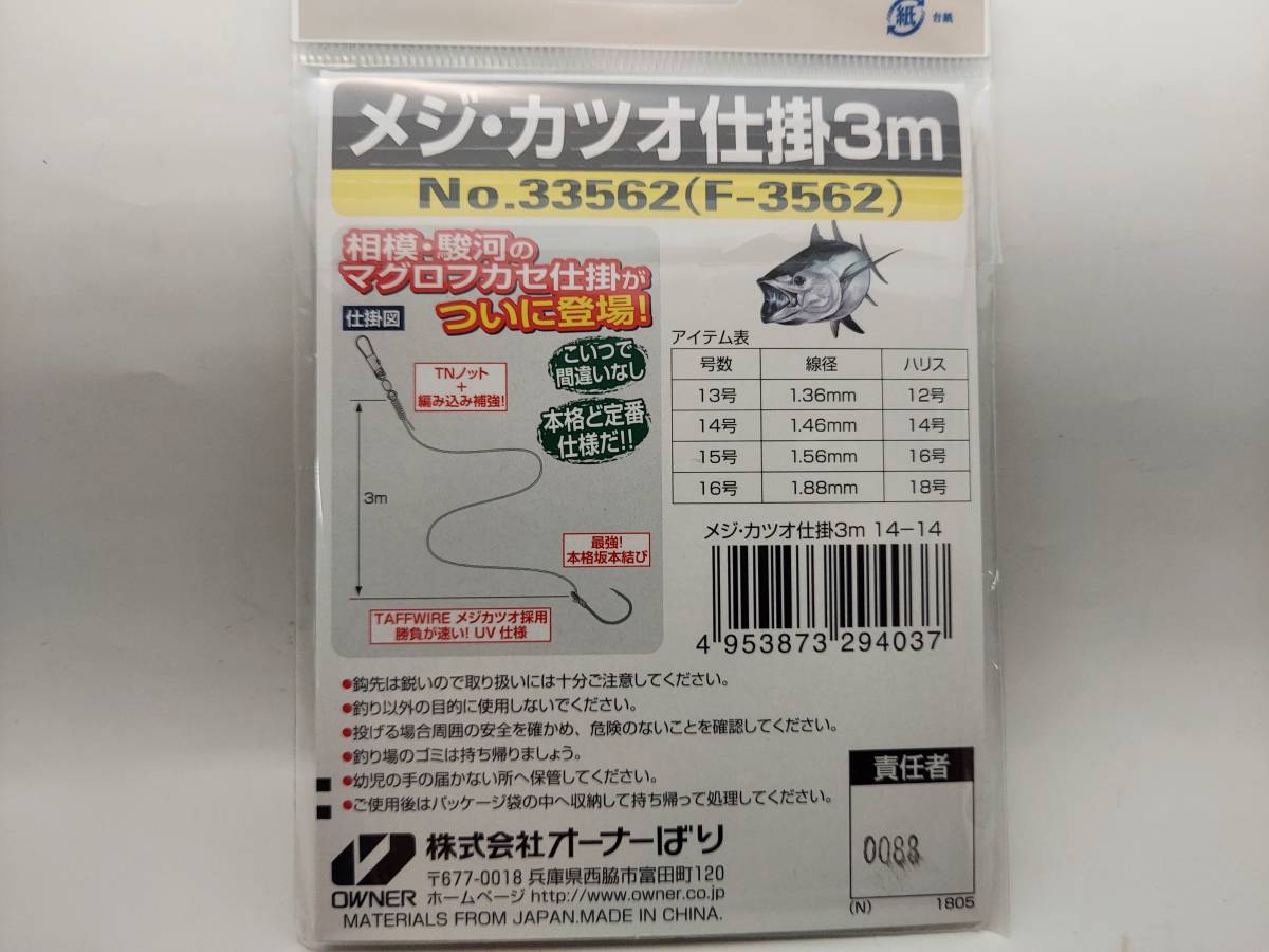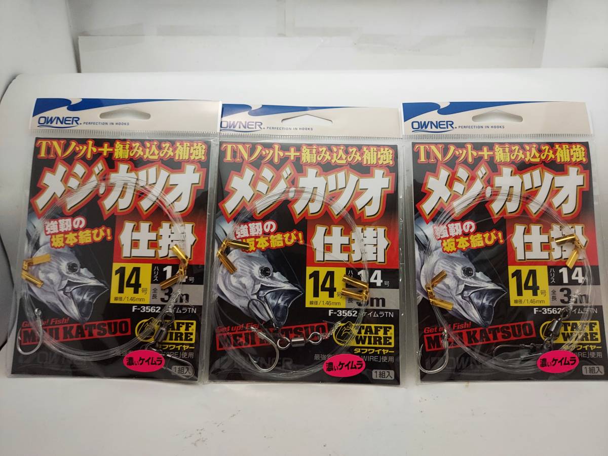 オーナー メジ・カツオ仕掛 14号 ハリス:14号 全長:3m 3個セット Fー3562
