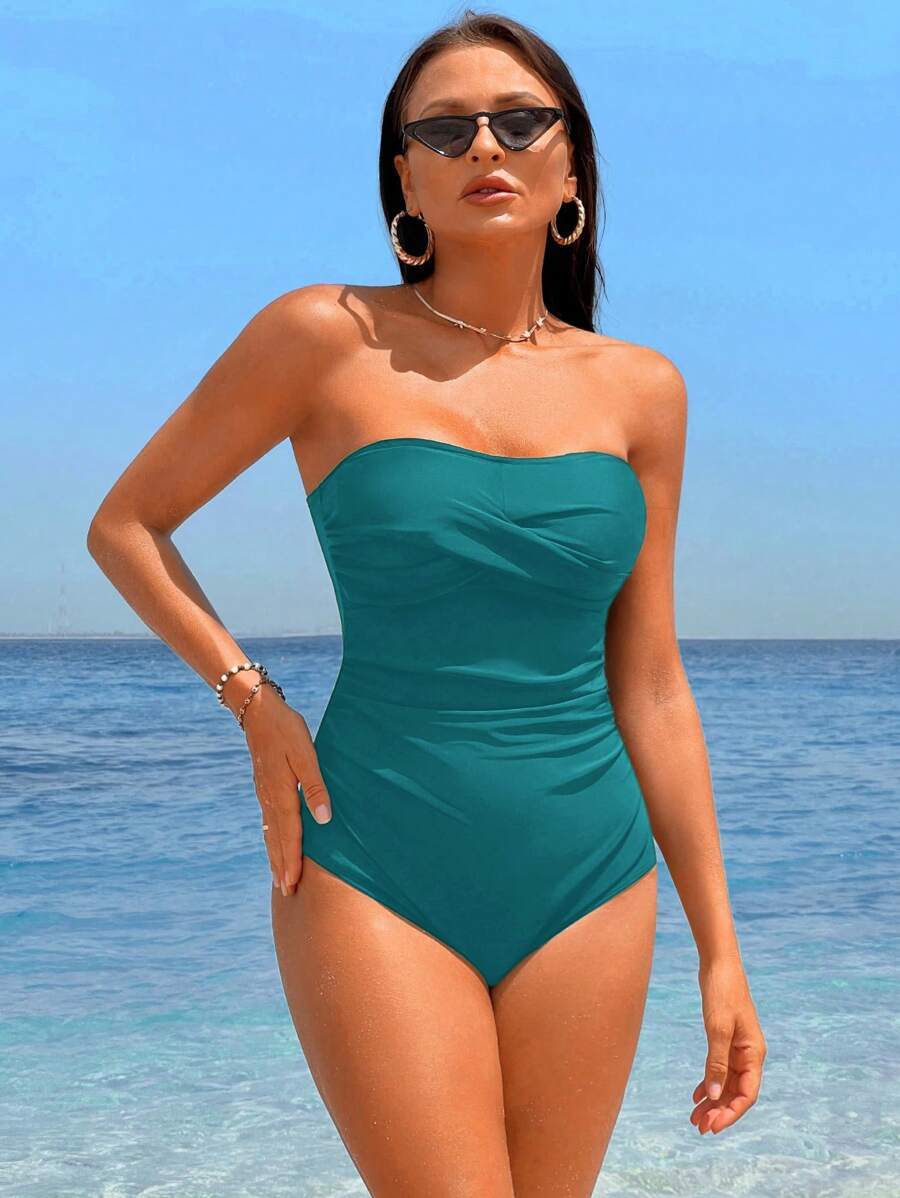 レディース 水着 ワンピース ワンピース水着 チューブトップ ソリッドカラー