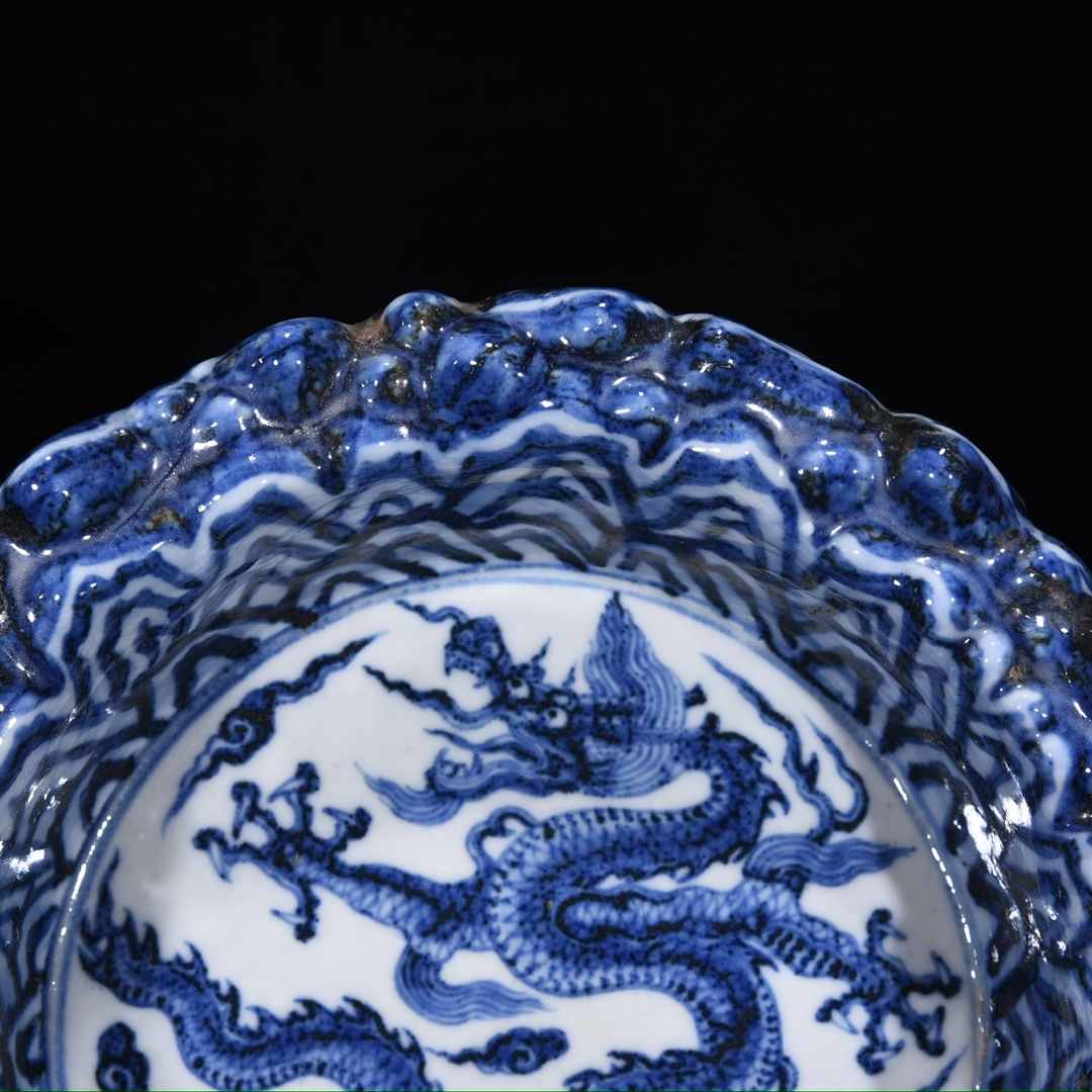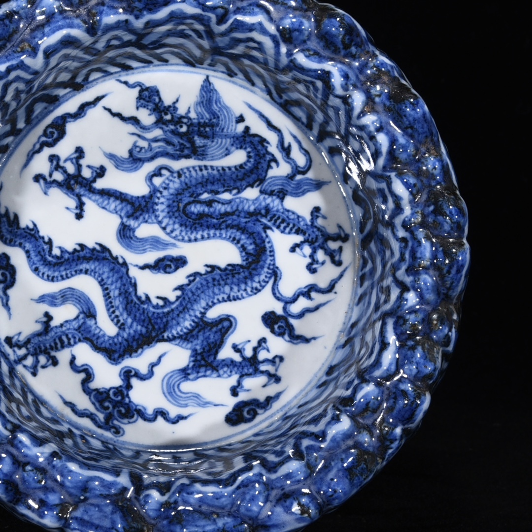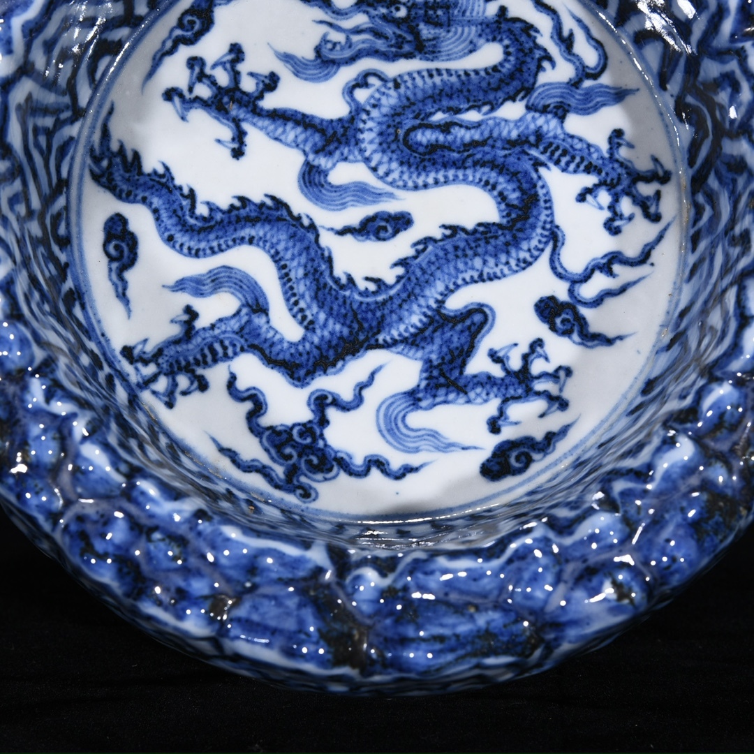 旧蔵 明 宣徳年制 青花 山石龍紋洗 陶芸 古陶磁器 中国磁器 極細工 中国古玩 骨董品 古美味 208