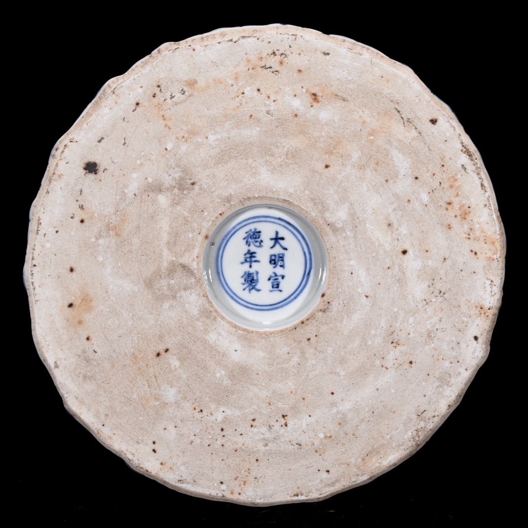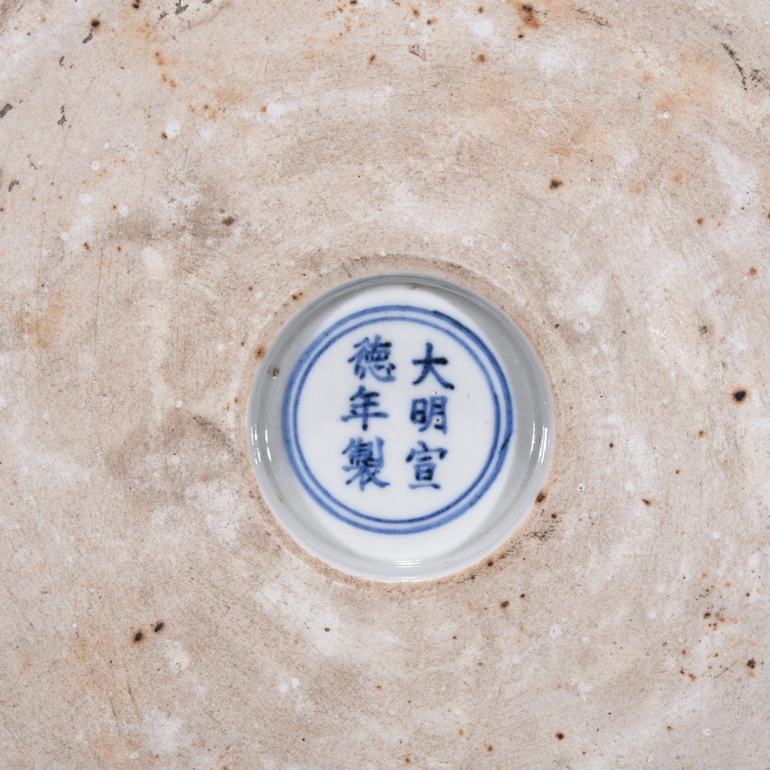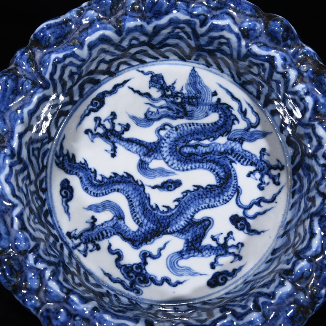 旧蔵 明 宣徳年制 青花 山石龍紋洗 陶芸 古陶磁器 中国磁器 極細工 中国古玩 骨董品 古美味 208