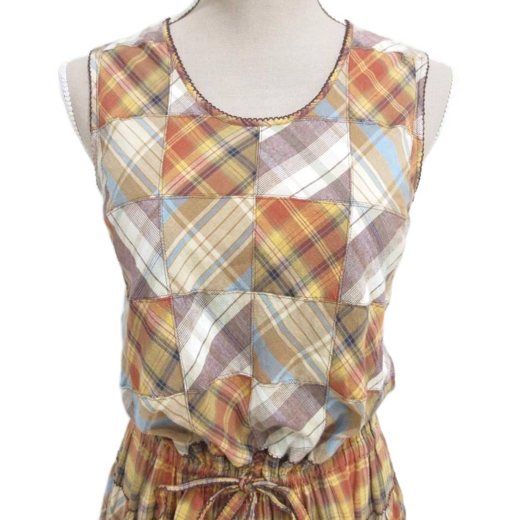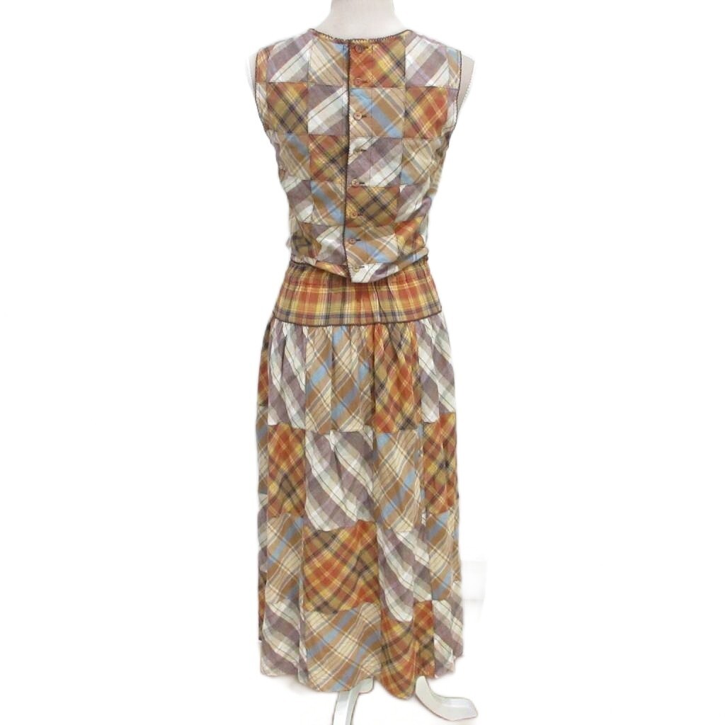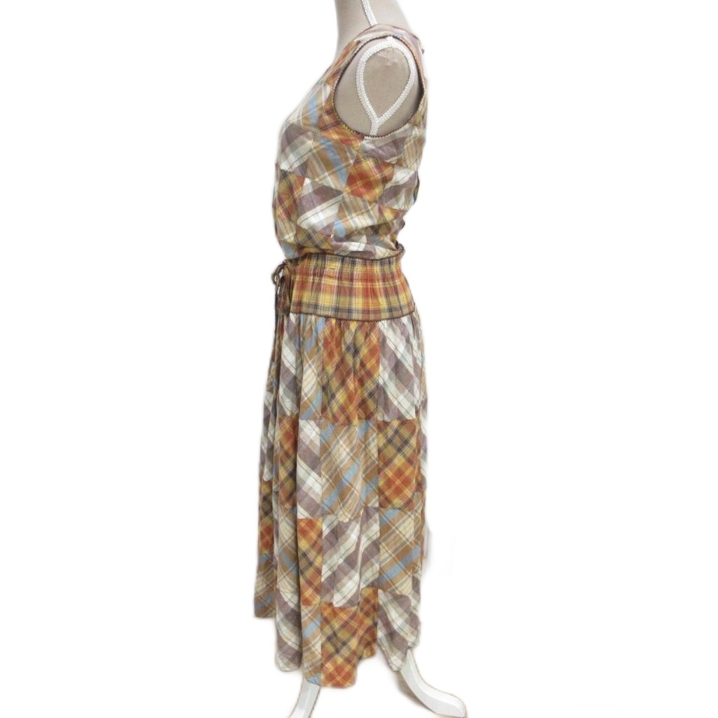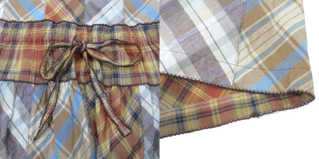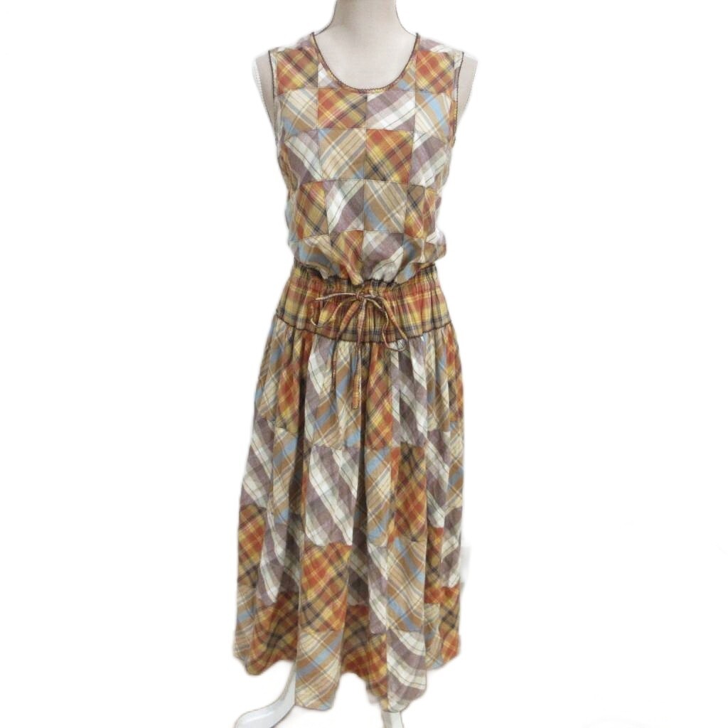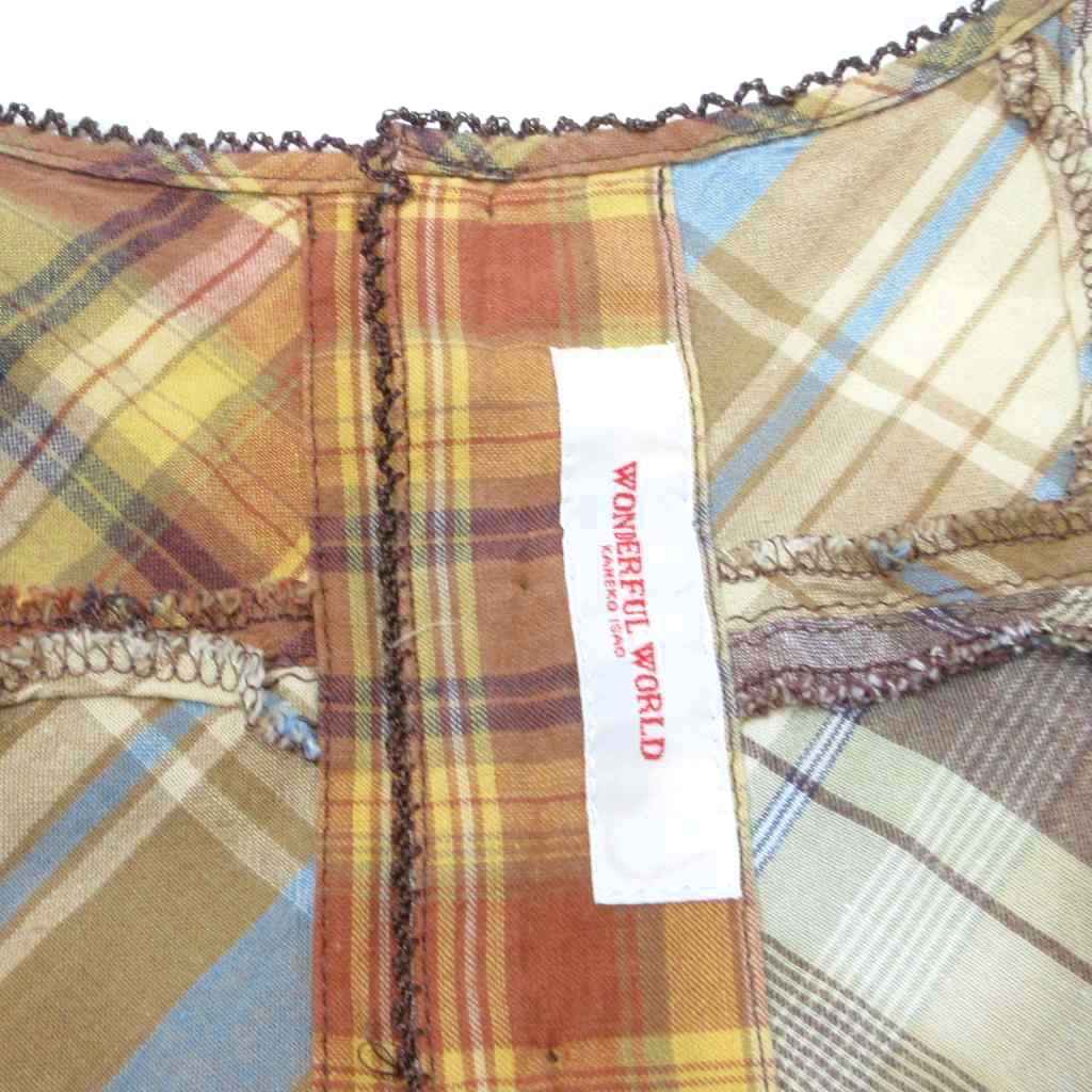 ワンダフルワールド WONDERFUL WORLD カネコイサオ 美品 ワンピース パッチワーク チェック リボン フレア ギャザー 大判スカーフ付