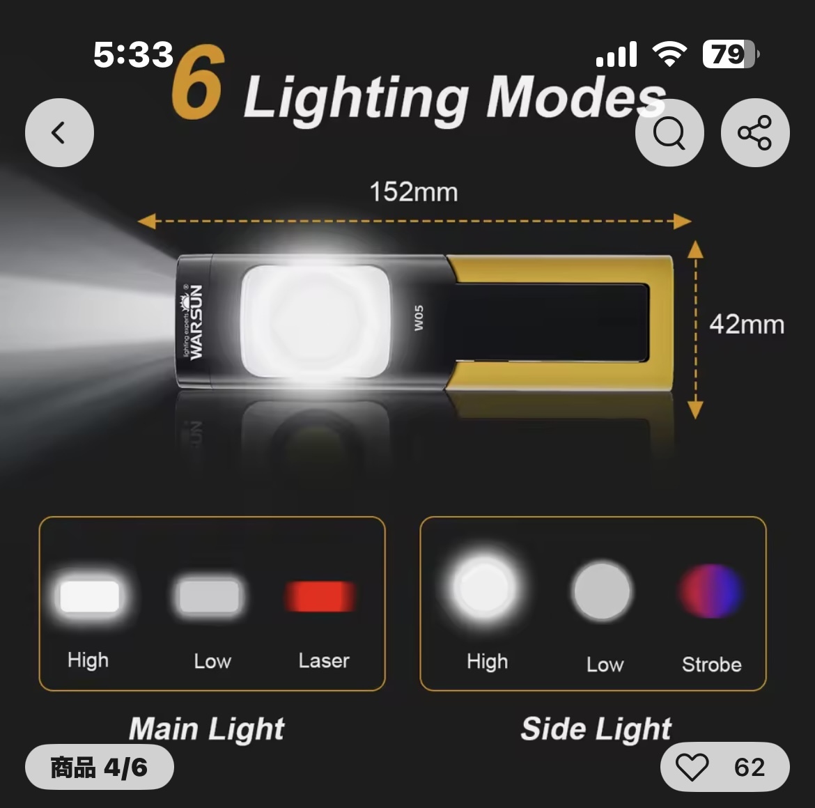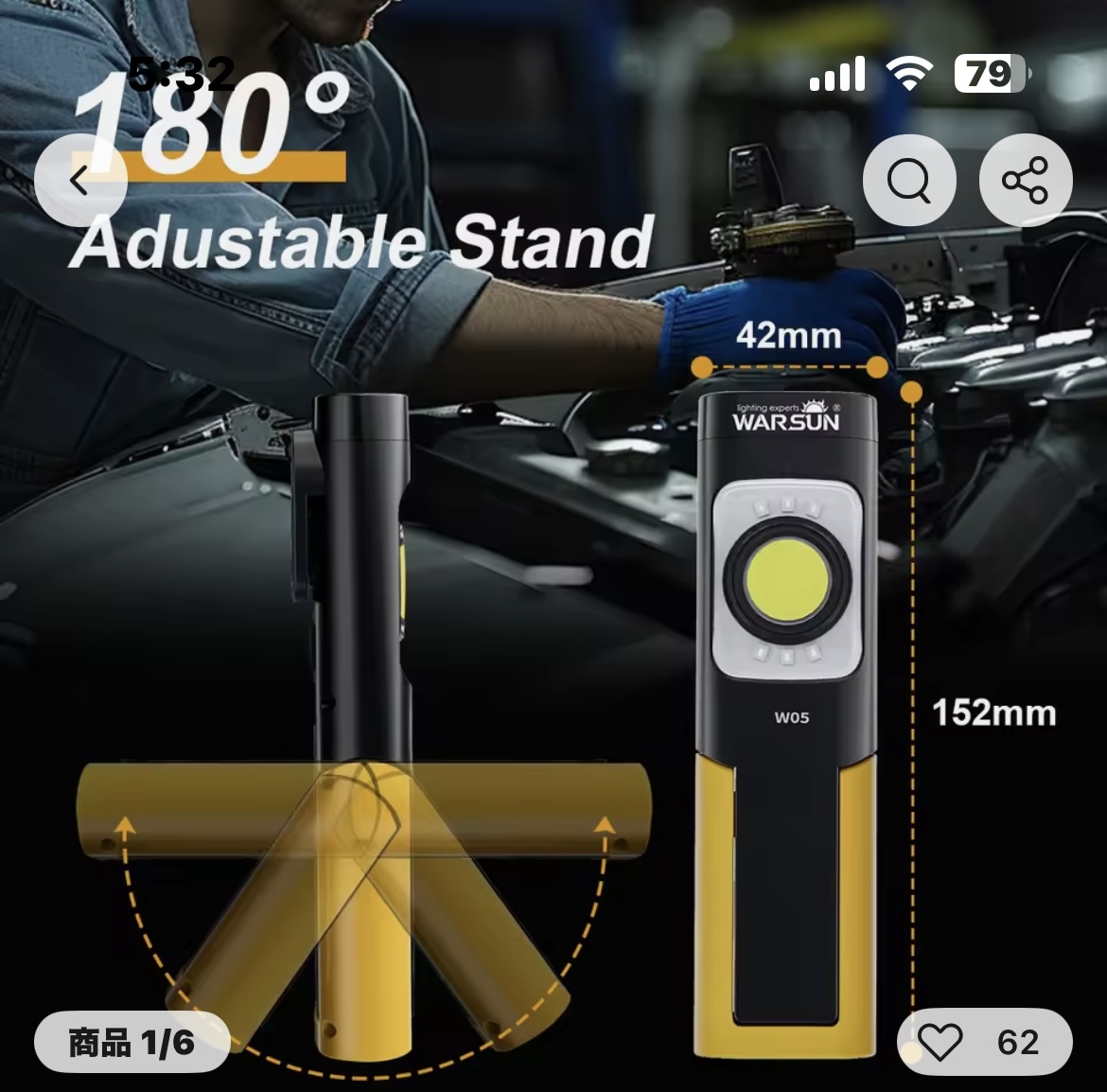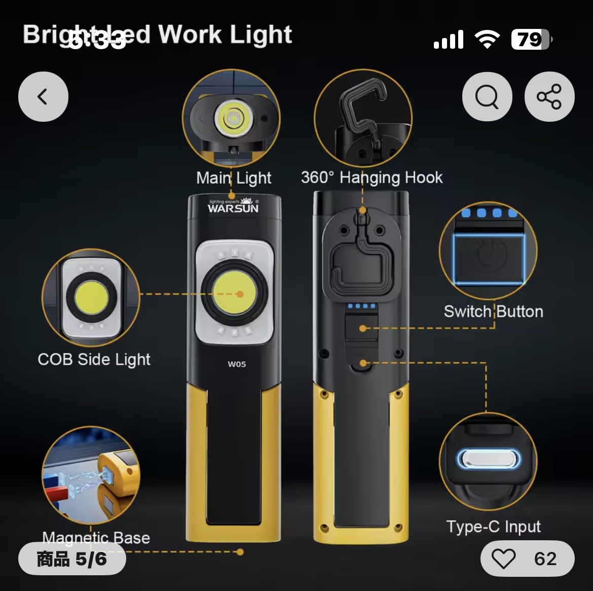 ★COBライトも強力で、オーライトSwivel COB 作業灯と同等の明るさです※私はほんの少し暗いのかな?と感じた程度です