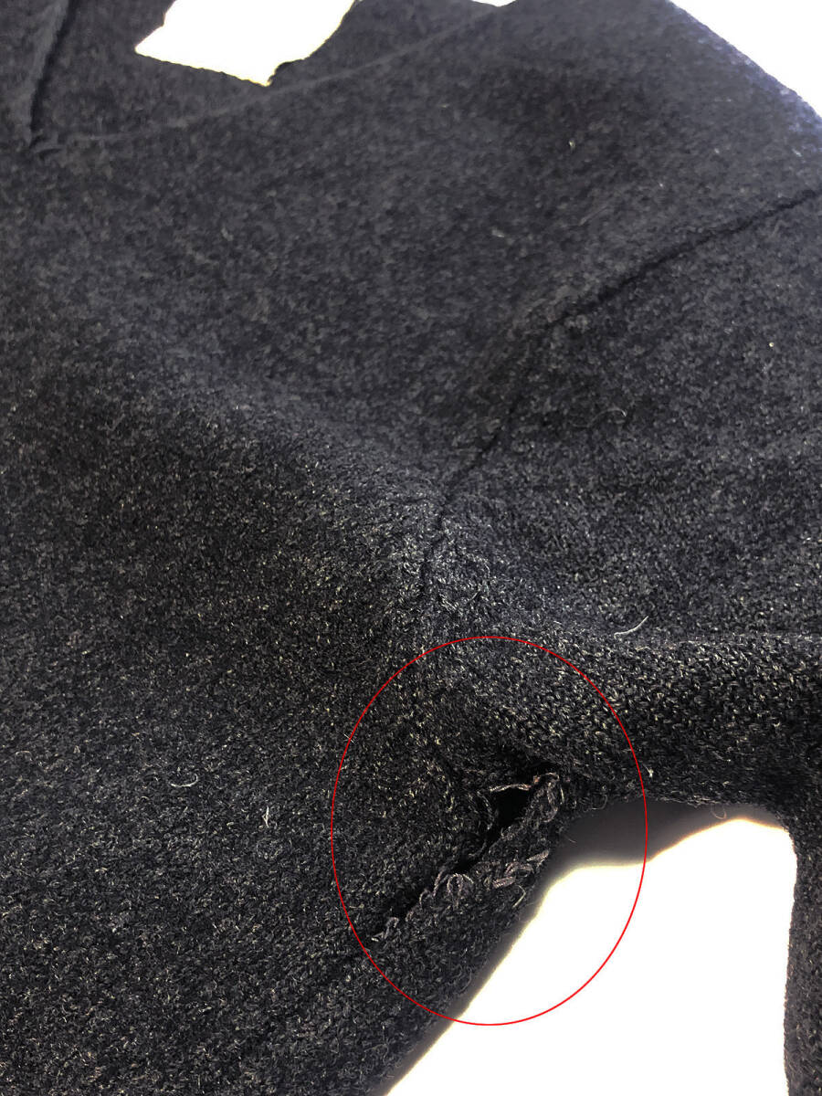 画像7枚目のように、Vネック部分のほつれ。タグの糸取れ。があります。