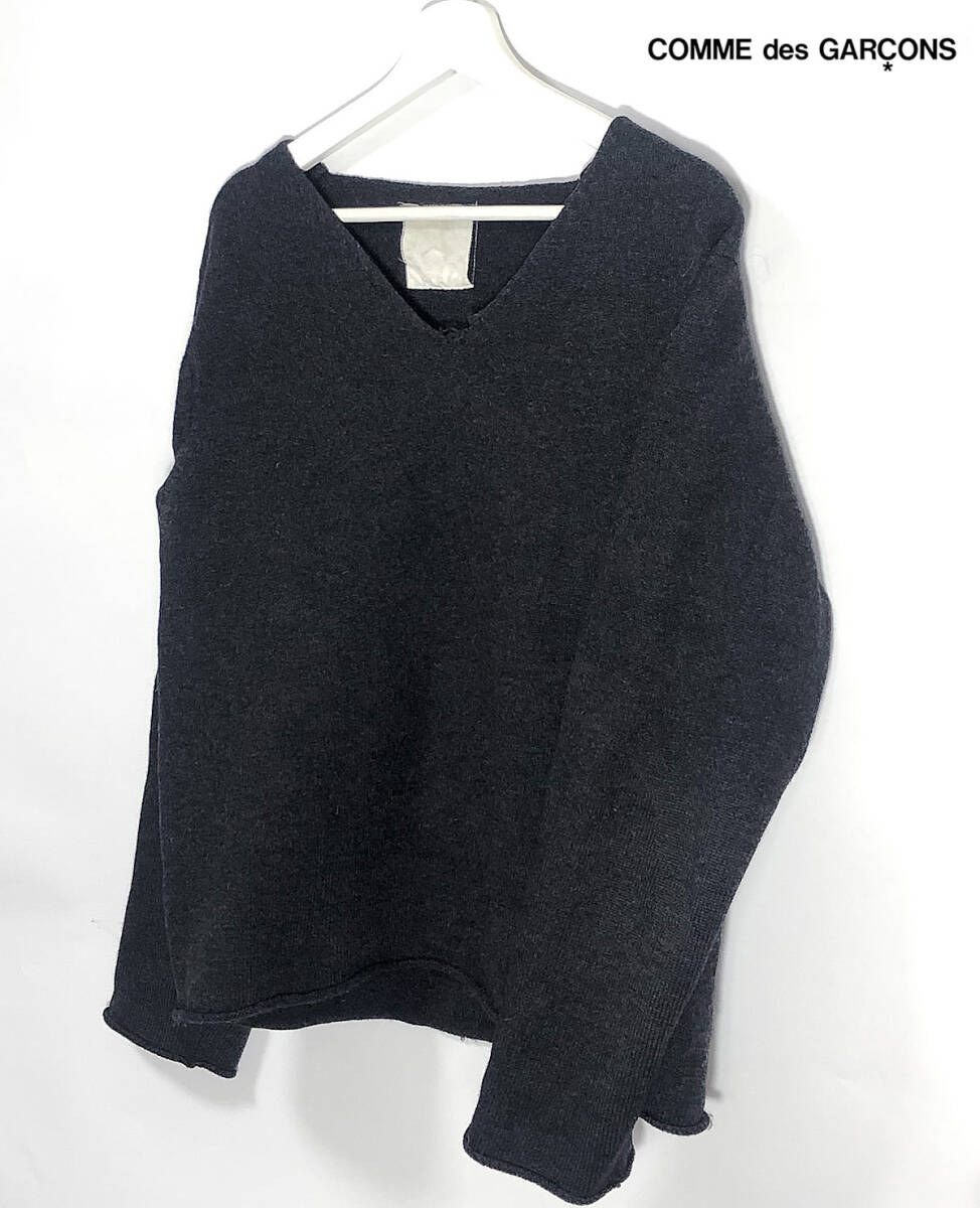 希少/vintage■1998AW/COMME des GARCONS ウール100% Vネック ニット/セーター 切りっぱなし巻き ロック仕上げ■コムデギャルソンアーカイブ■男女兼用です。