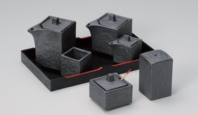 四角 いぶし黒  調味料入れ セット 瀬戸焼   日本製