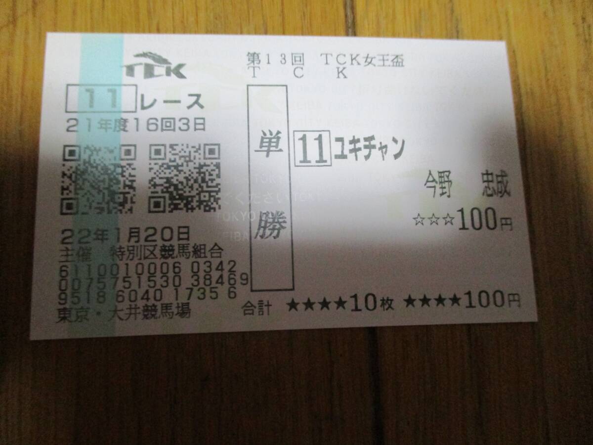 【現地的中単勝馬券】 平成21年度第13回TCK女王盃優勝 ユキチャン 今野忠成騎手騎手名入り