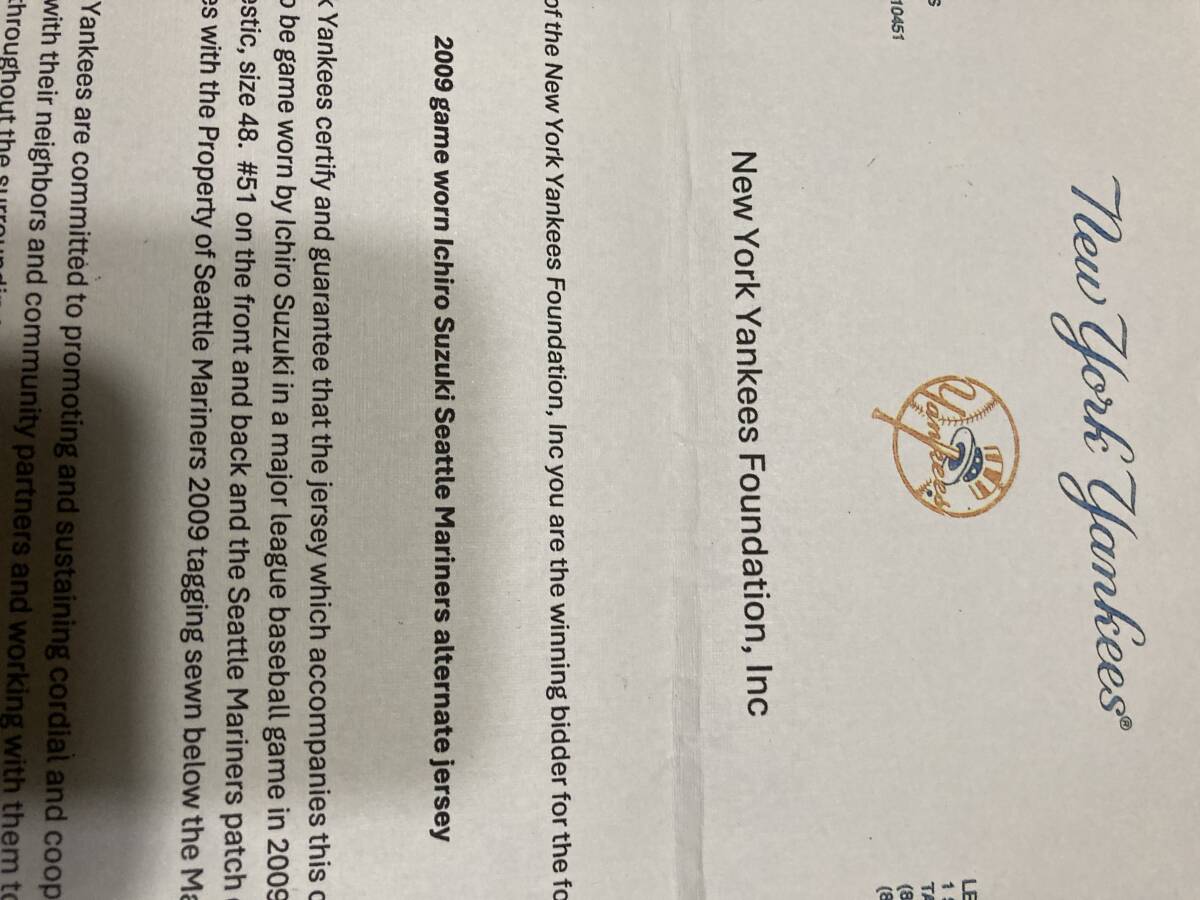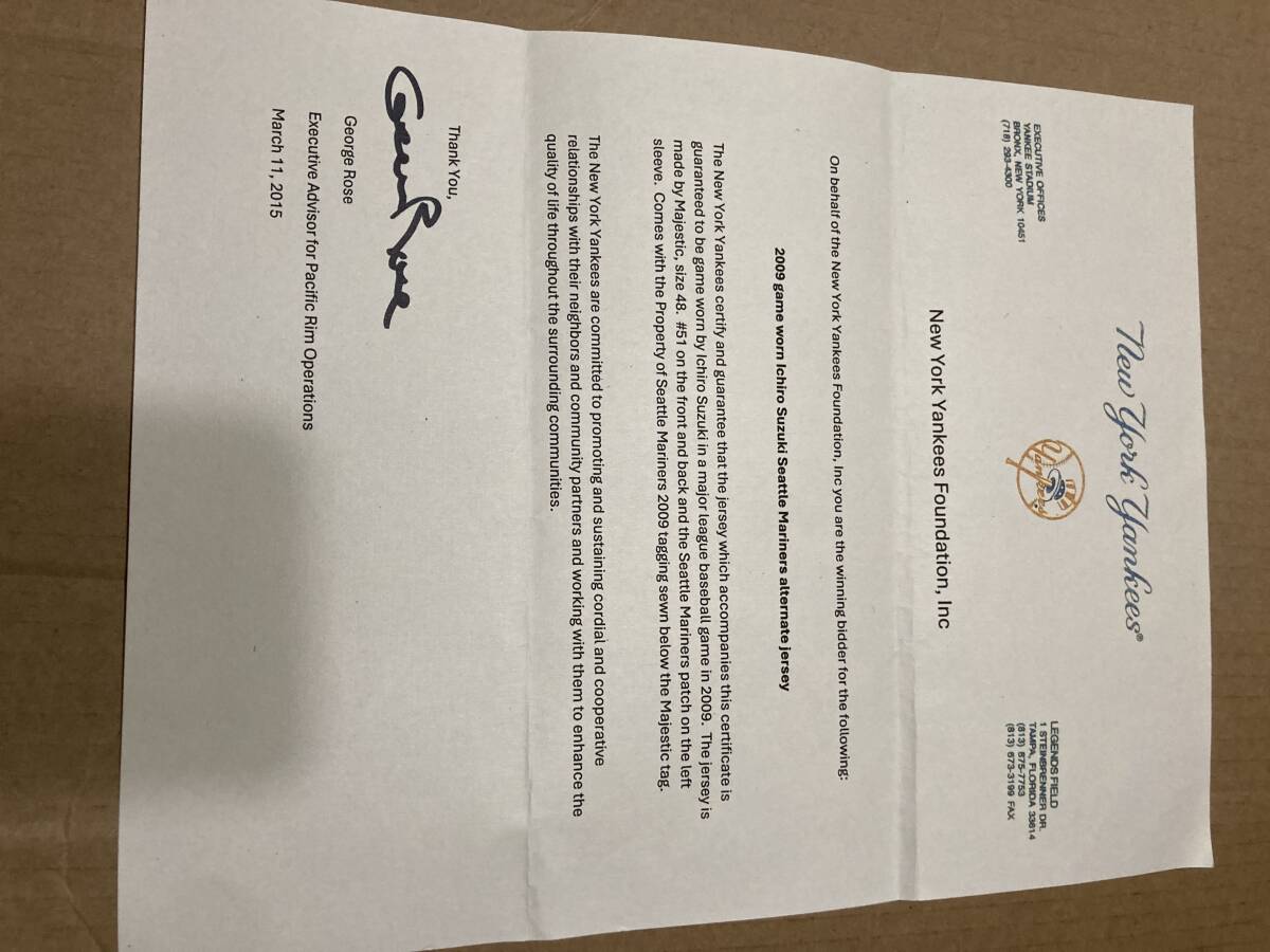 イチロー09年のオルタネートジャージ実使用です。殿堂入り、マリナーズの永久欠番と評価が上がるいっぽうです。