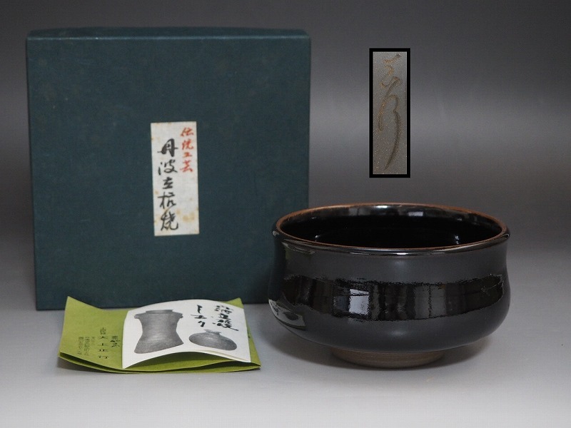 | A4356 丹波立杭焼 やまの窯 十四代 大上正行 作 茶碗 化粧箱付 ☆ 茶道具 茶器 茶懐石 茶事 抹茶碗 陶器 作家物 在銘 陶印 美品 良品 無傷 | ||