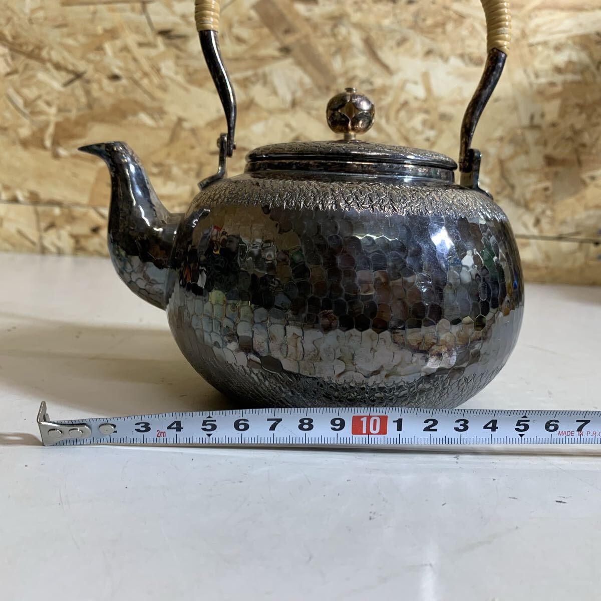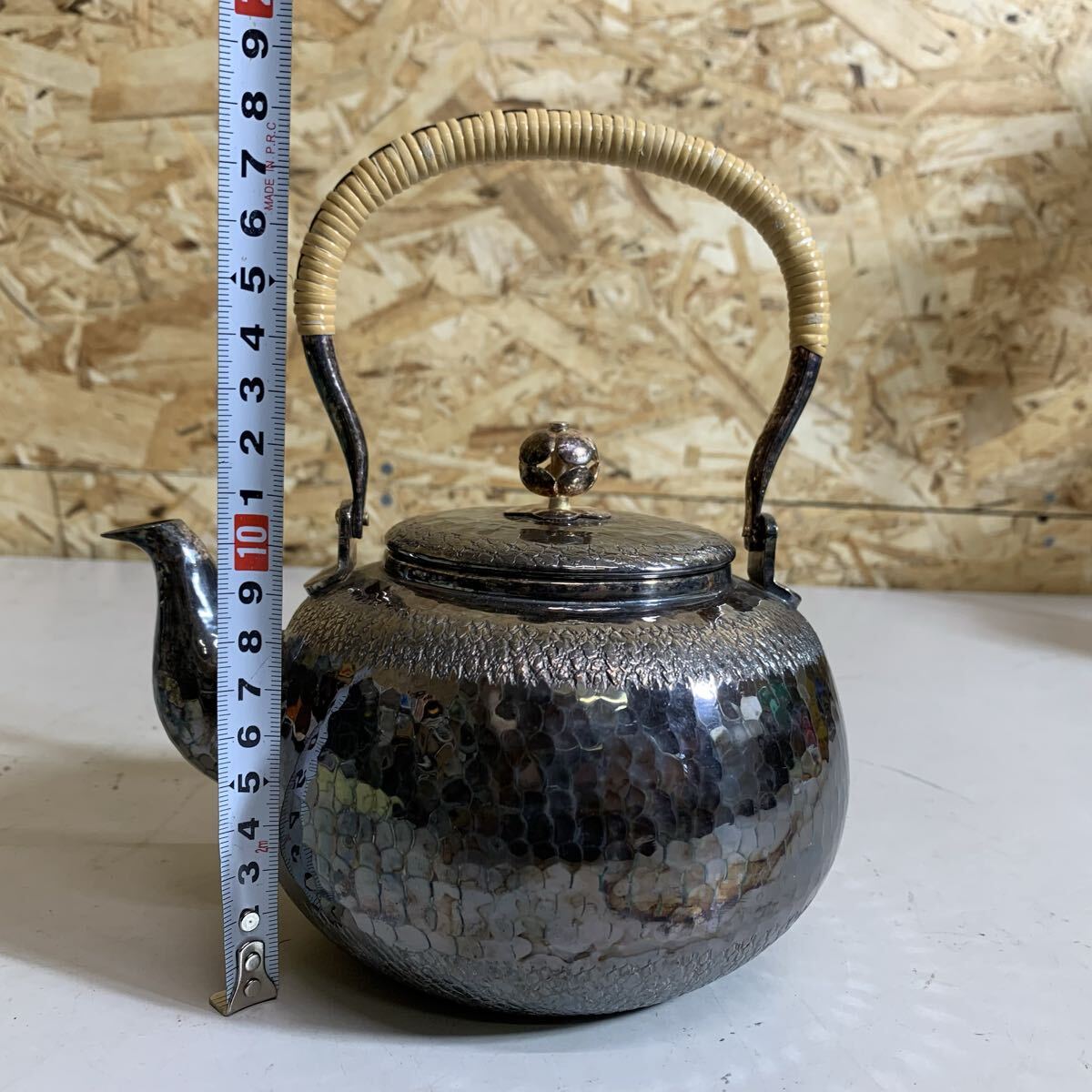 秀峯堂造 銀瓶 湯沸 茶道具 急須 煎茶道具 やかん いぶし銀 茶器 レトロ NN806