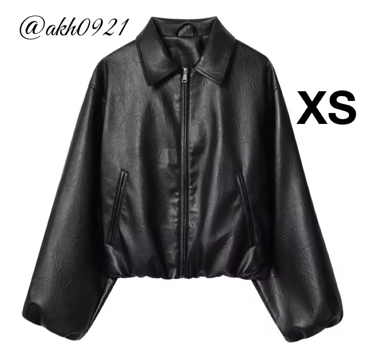 新品★秋新作★vintage ヴィンテージ レトロ black フェイクレザー PU ブルゾン ジャケット アウター XSサイズ レディース★ZARA好きな方に