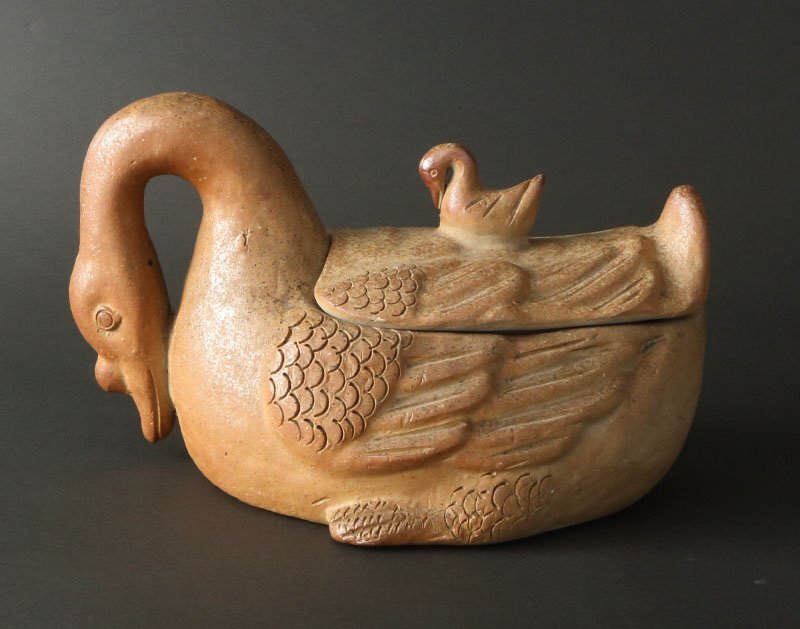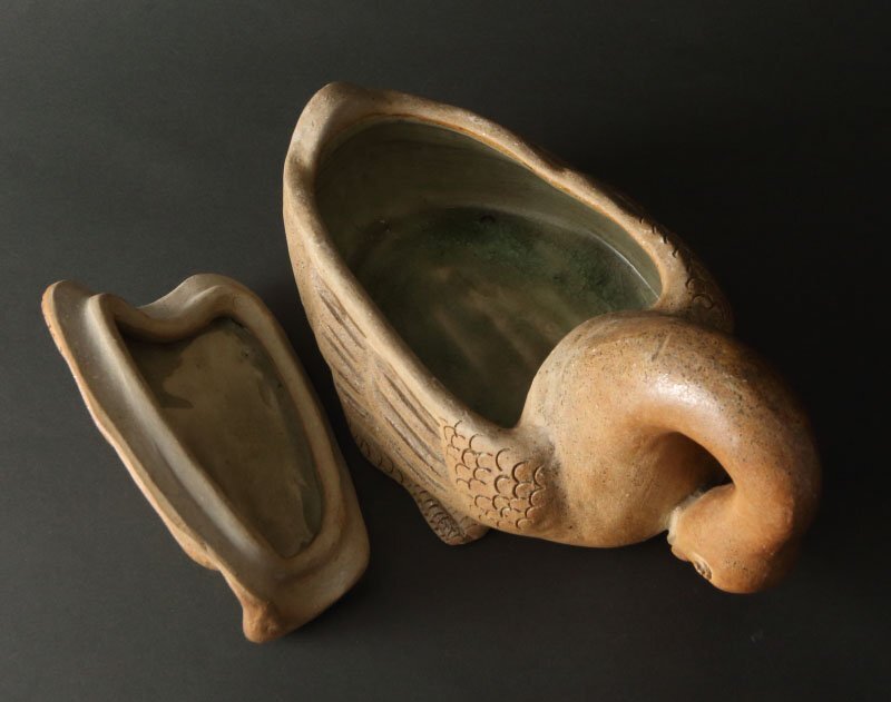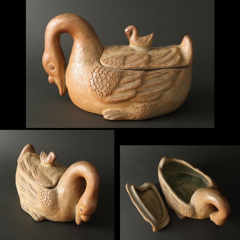 委託HK◇時代 信楽親子鴨形蓋物(茶道具 陶磁器 陶芸 信楽焼 古信楽 動物 鳥獣 菓子器 食器 喰籠 料理 菓子 小物入れ 古物 飾り 置物)