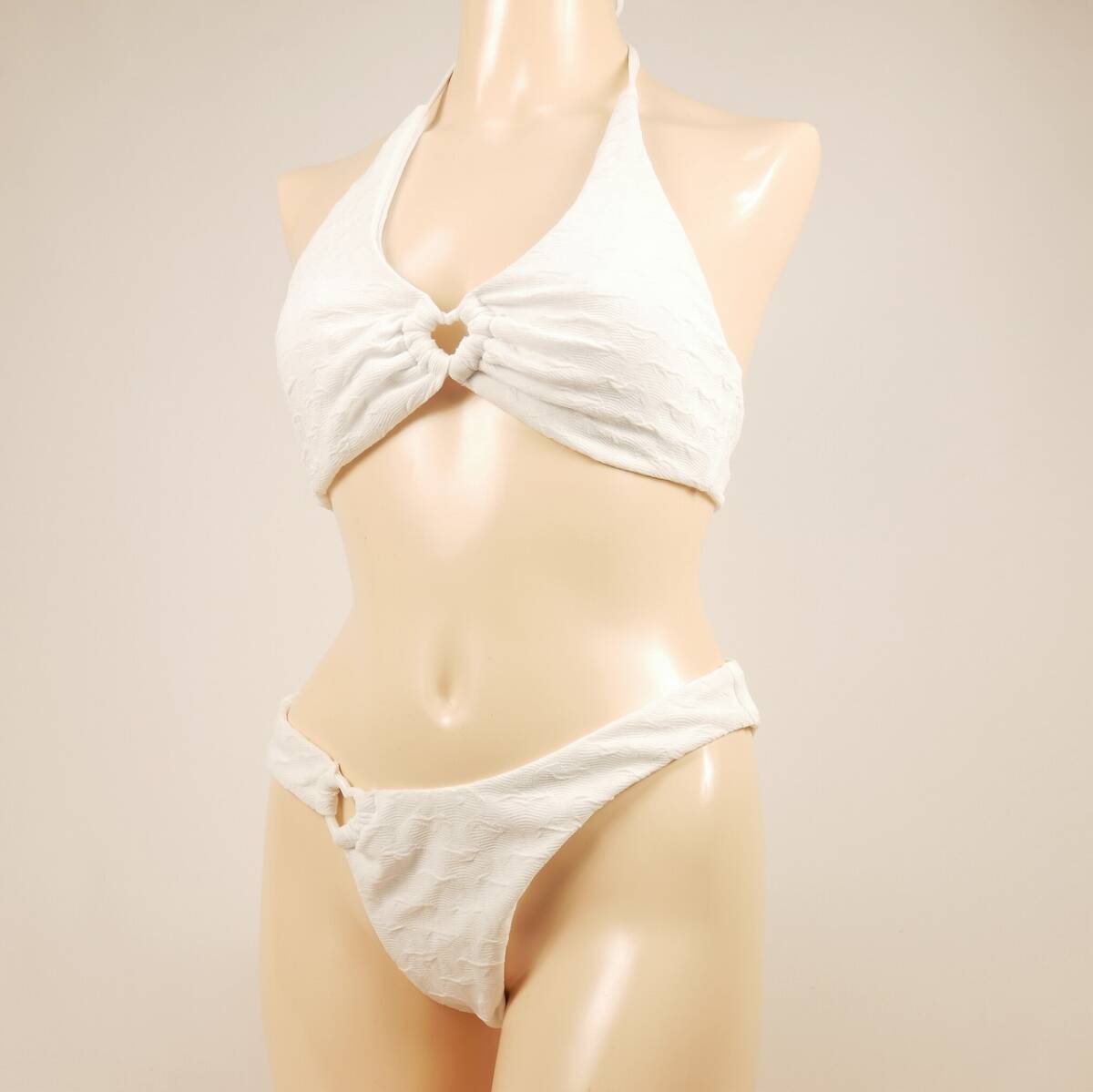 7848 美品 エレガントシンプルデザイン ビキニホルターネック S ホワイト 匿名配送