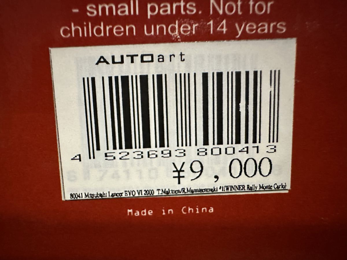 1/18 AUTOart 80041 Mitsubishi Lancer Evolution Ⅵ WRC 2000 #1 MONTE CARLO Rally WINNER T.Makinen
