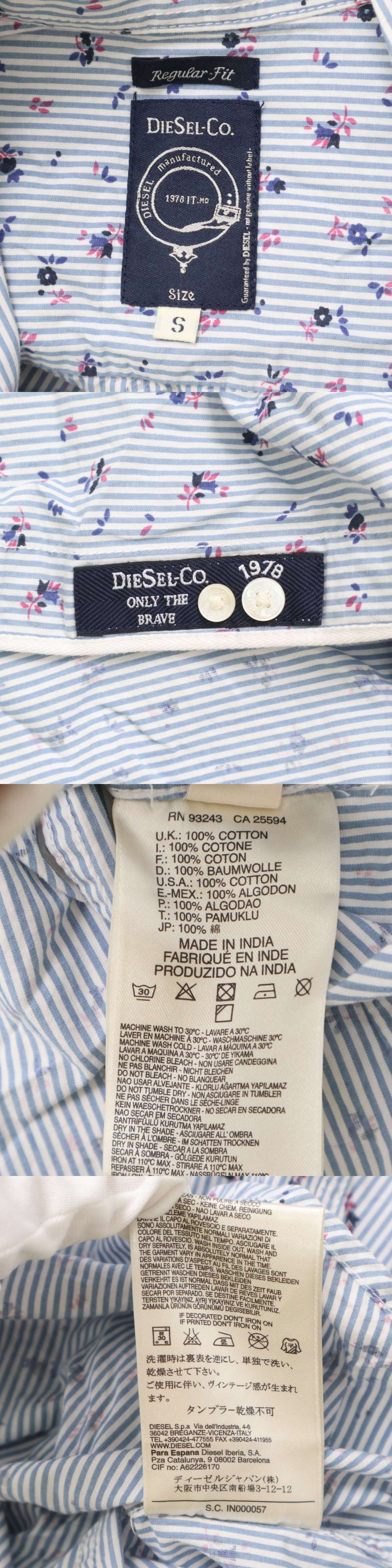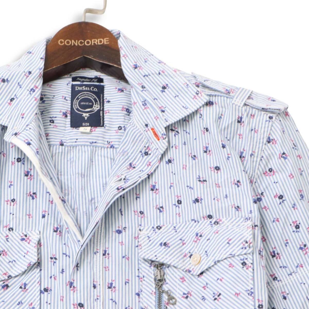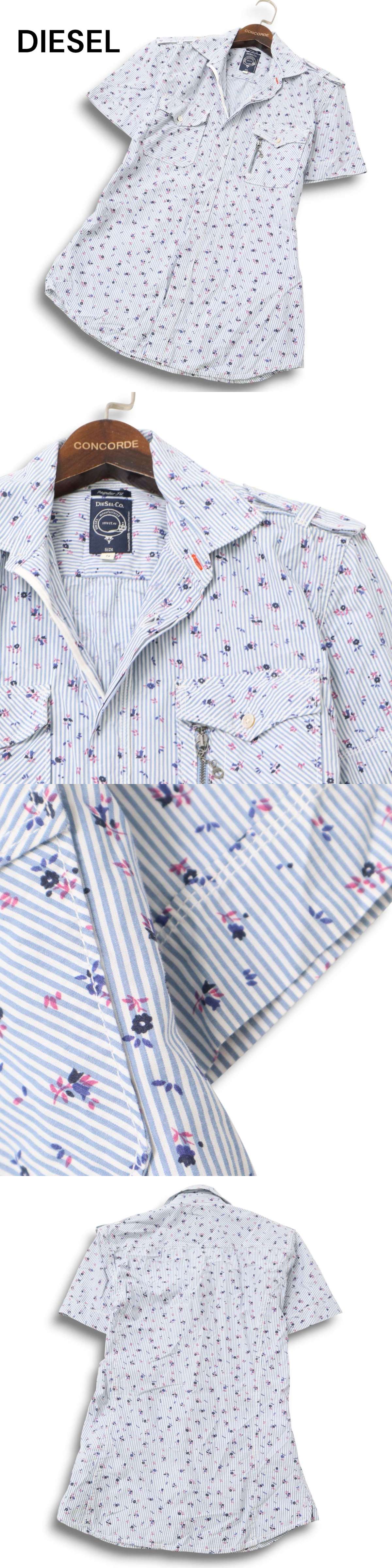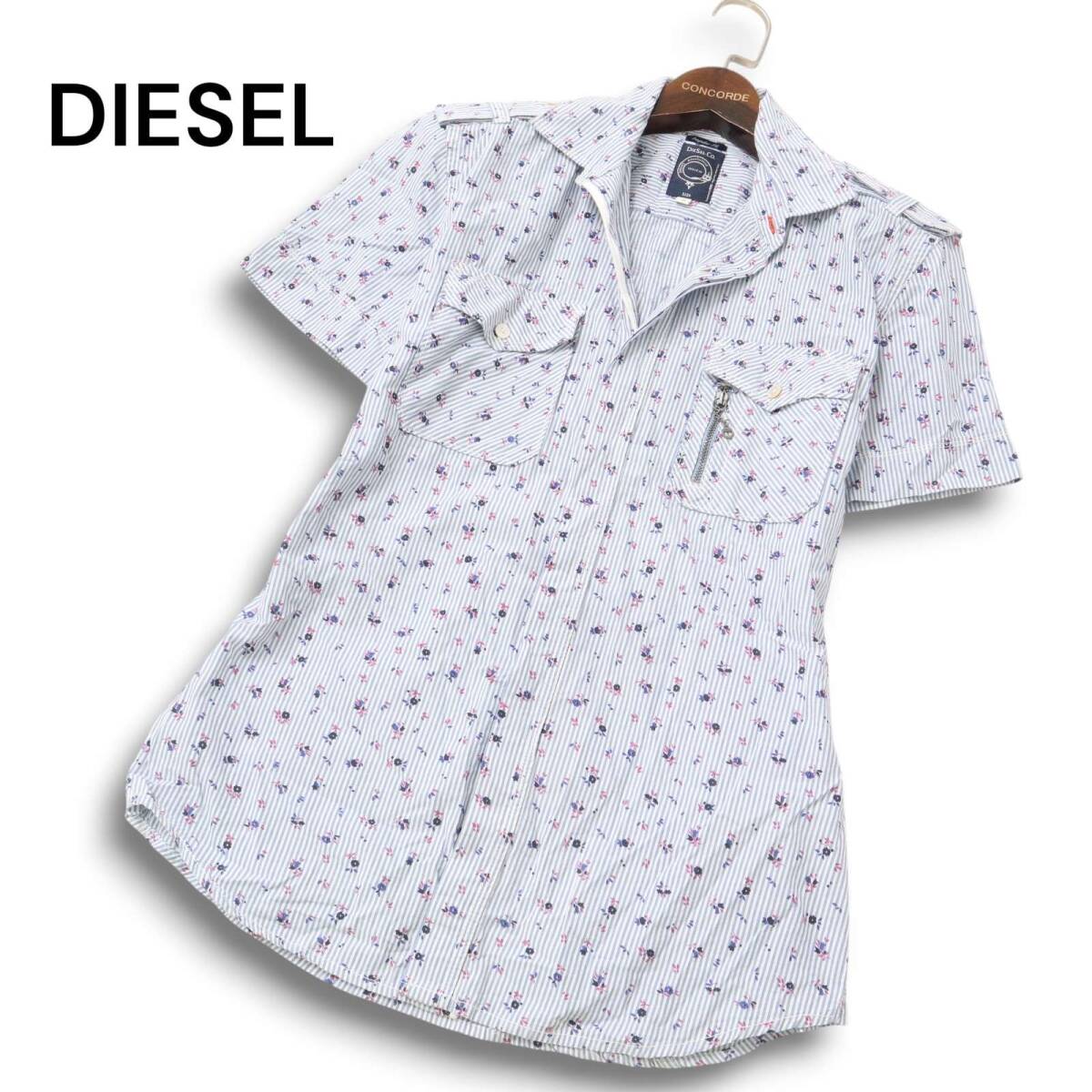 DIESEL ディーゼル 春夏★ ストライプ 花柄 フラワー 総柄 半袖 ミリタリー シャツ Sz.S メンズ