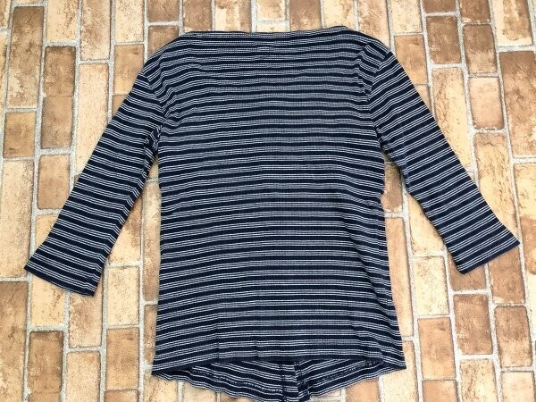 part2 by junko shimada ジュンコ シマダ レディース 七分袖 ボーダー 前開き カットソー 日本製 M 紺白 コットン
