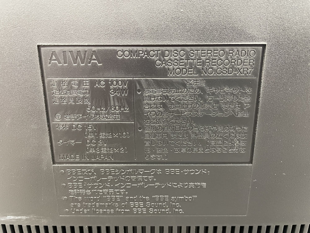 AIWA STRASSER CD CDラジカセ CSD-XR7 CD/ラジオ/カセット アイワ 通電OK 現状ジャンク扱い 札幌市手稲区