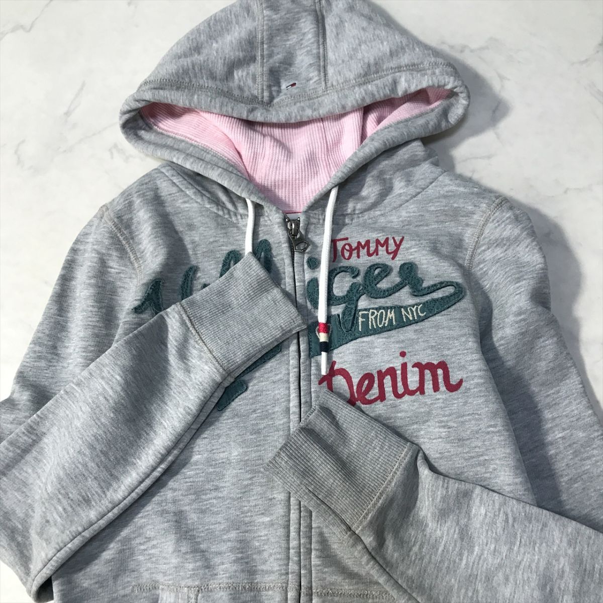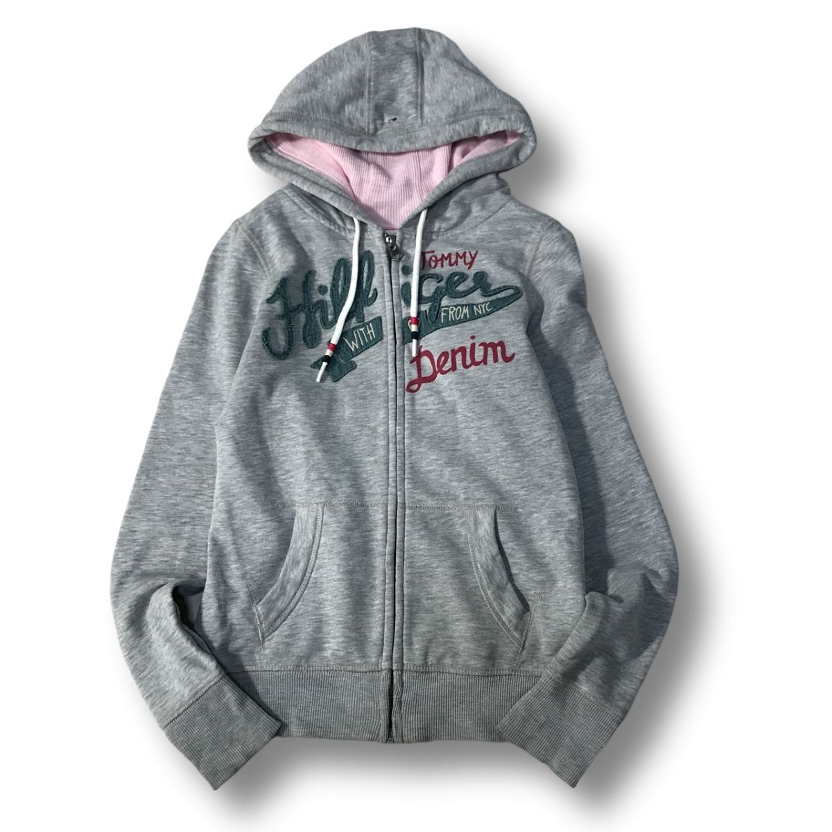 《良品◎》HILFIGER DENIM ヒルフィガーデニム トミーヒルフィガー★ビッグロゴ*フーデッドジップアップパーカー*グレー*XS(MA9170)◆S60