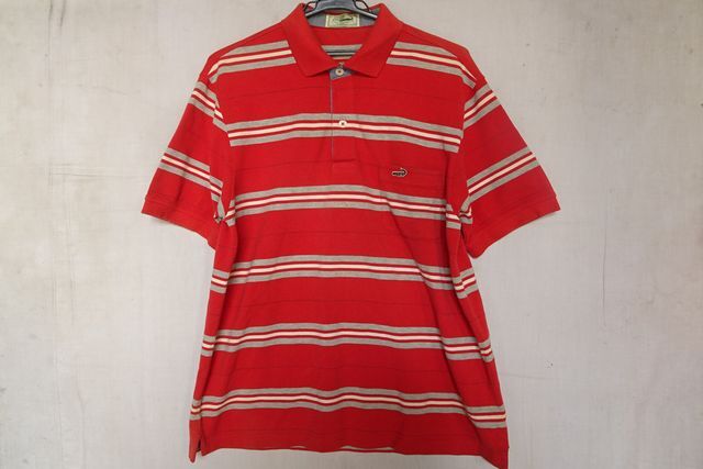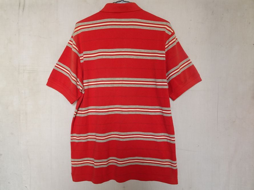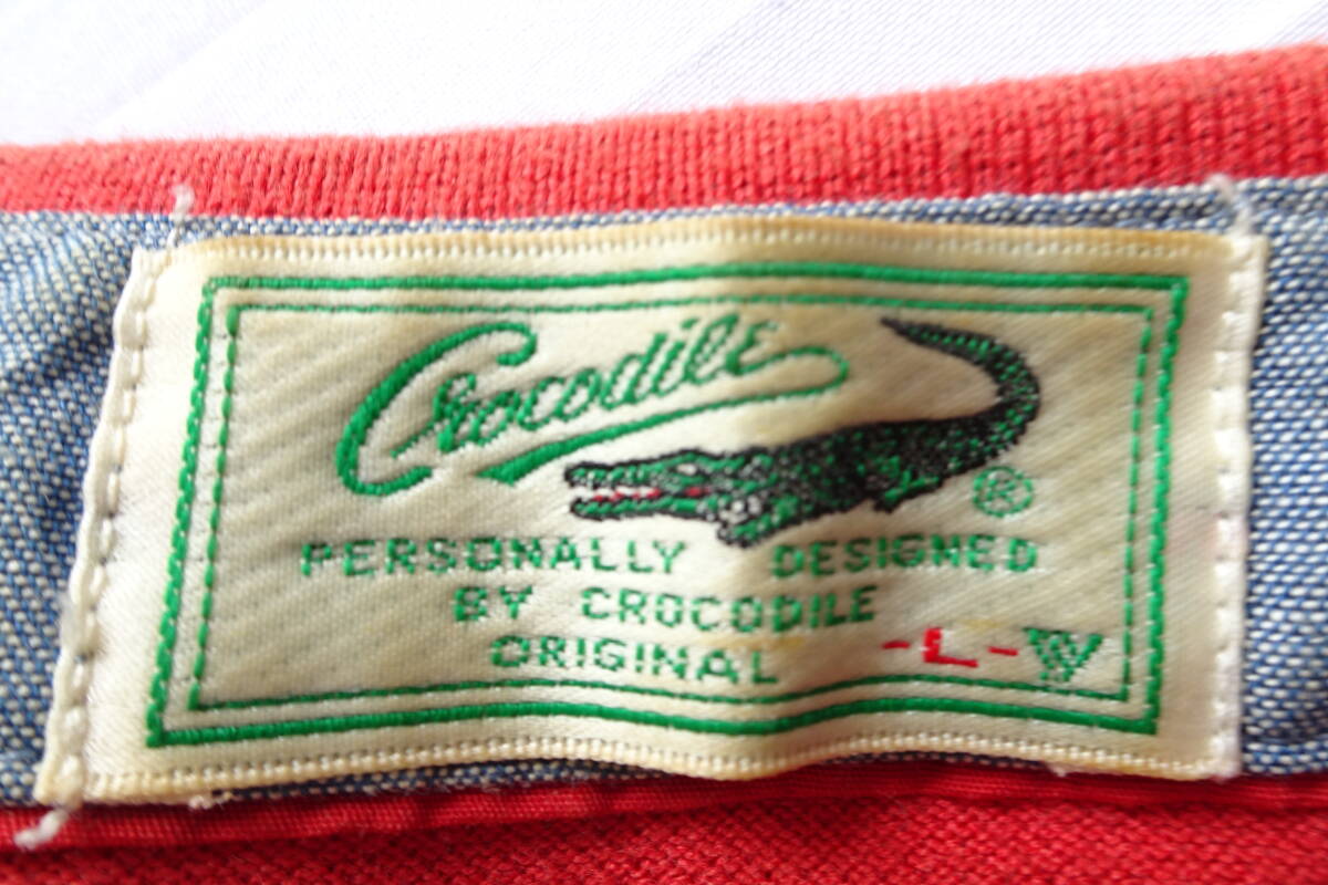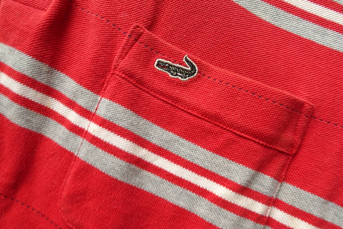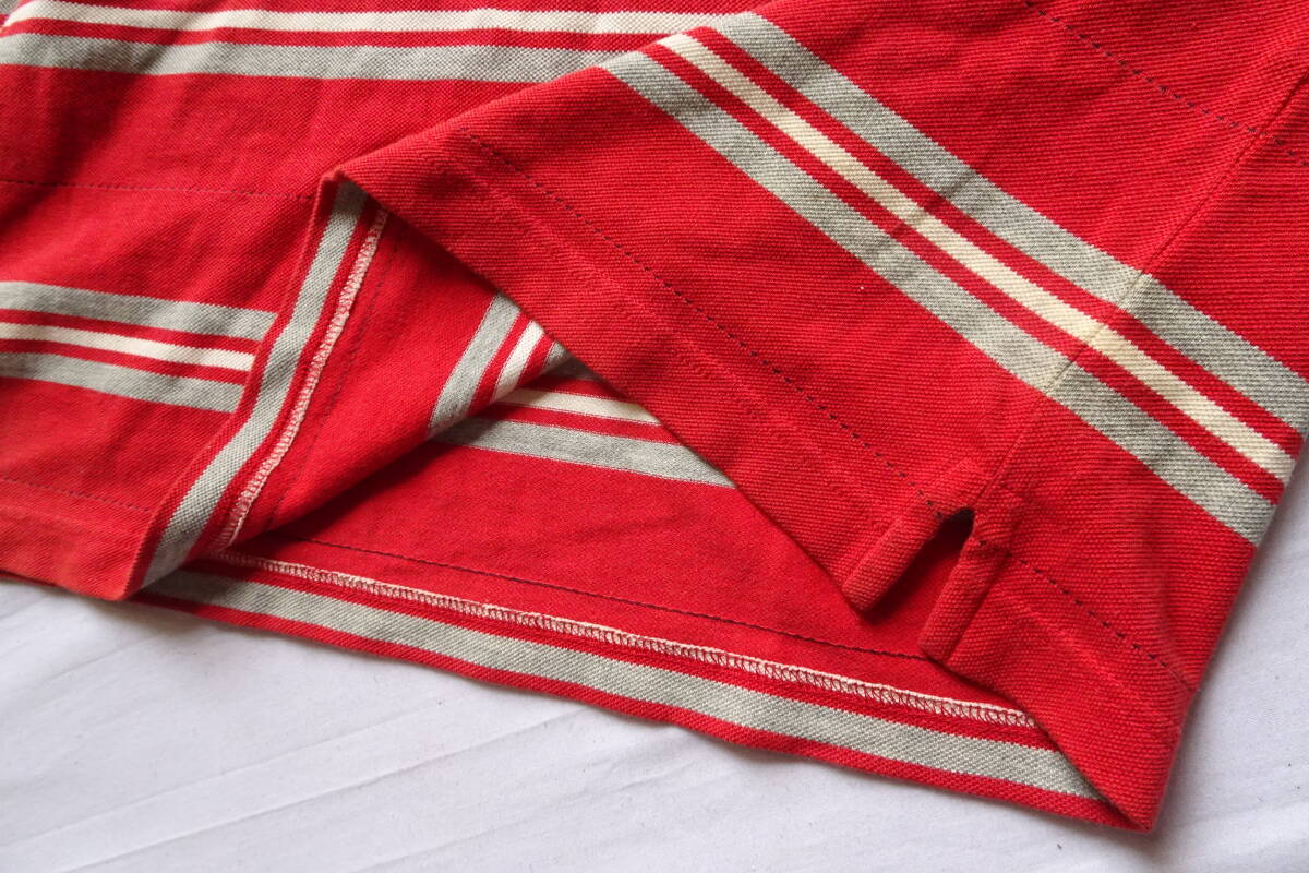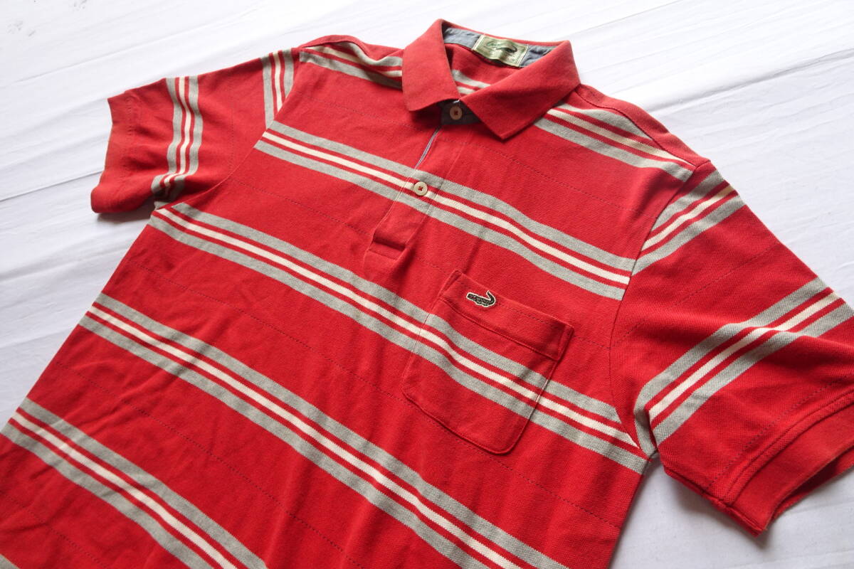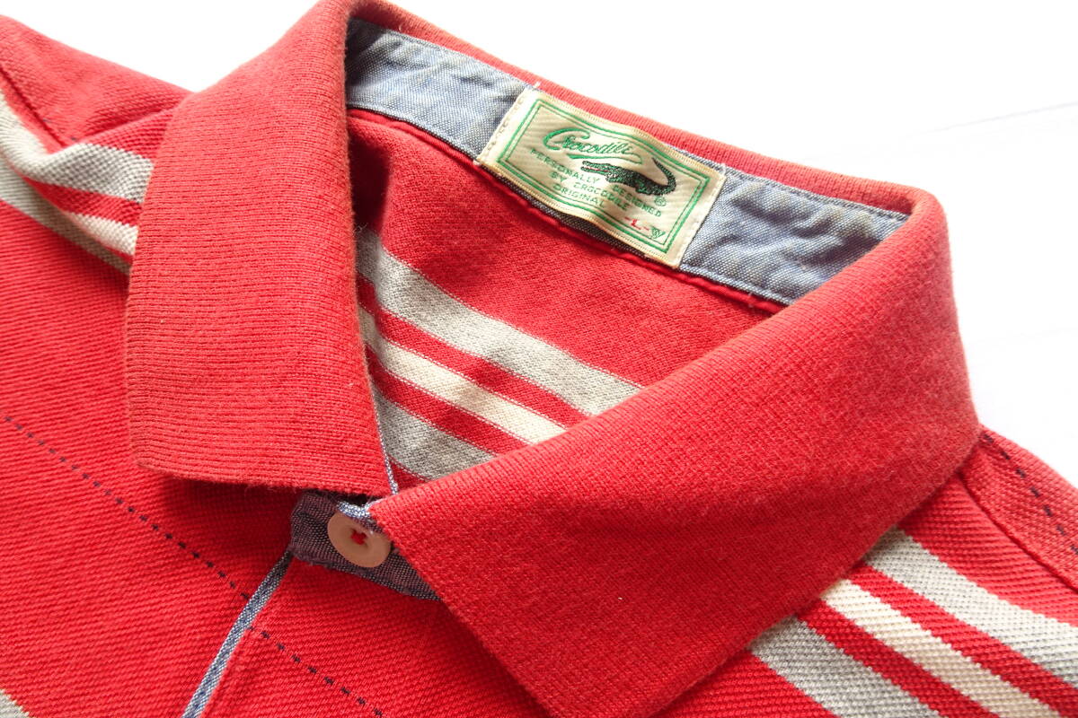 Crocodile/クロコダイル/半袖ポロシャツ/鹿の子素材/ボーダー柄/左胸ポケット/裾サイドスリット/赤/レッド/Lサイズ(8/27R7)