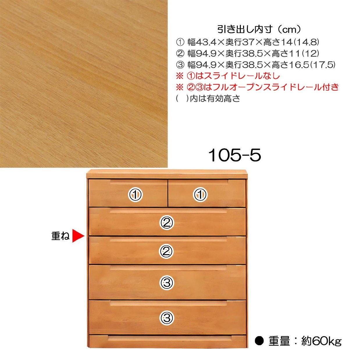 チェスト タンス たんす 木製 おしゃれ 衣装ケース 洋服タンス 5段 幅105cm 収納家具 完成品