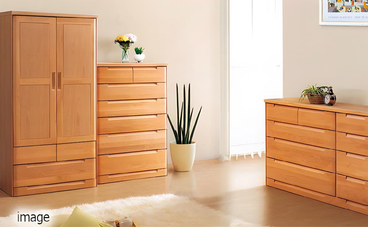 特  徴幅105cm、表面材にアルダー材を使用した、木の温もりあふれるハイチェストです。ダークブラウン色もあります。