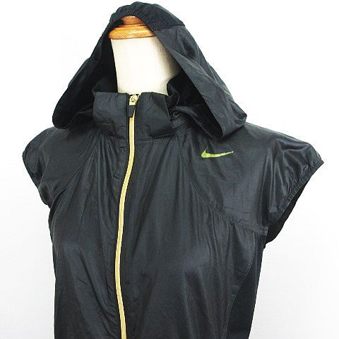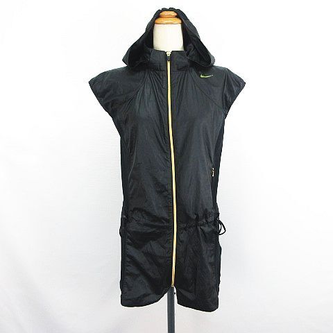 ナイキ NIKE チュニック ウィンドブレーカー フレンチスリーブ フード ジップアップ 切替 ロゴ S ブラック ランニングウェア ※EKM レディース