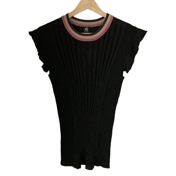 ポールスミス PaulSmith ノースリーブカットソー サイズXL - 黒×ピンク×マルチ レディース クルーネック/ラメ/フリル トップス