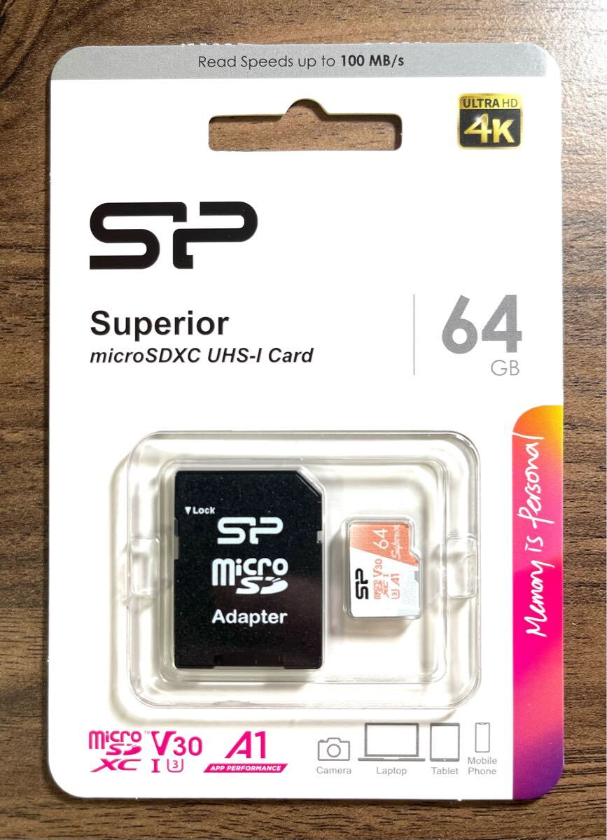 製品 :microSD カード 64GB 4K class10 UHS-1 U3