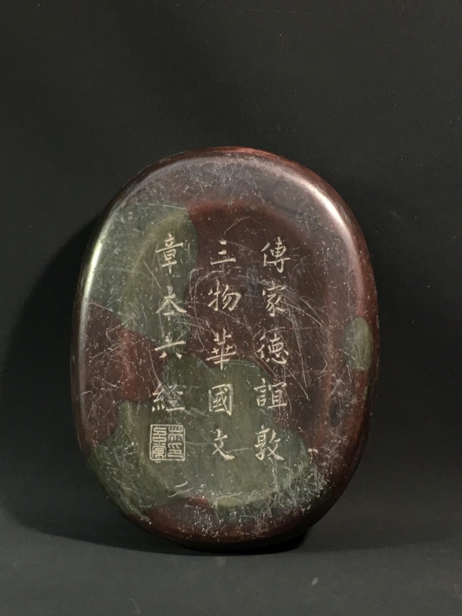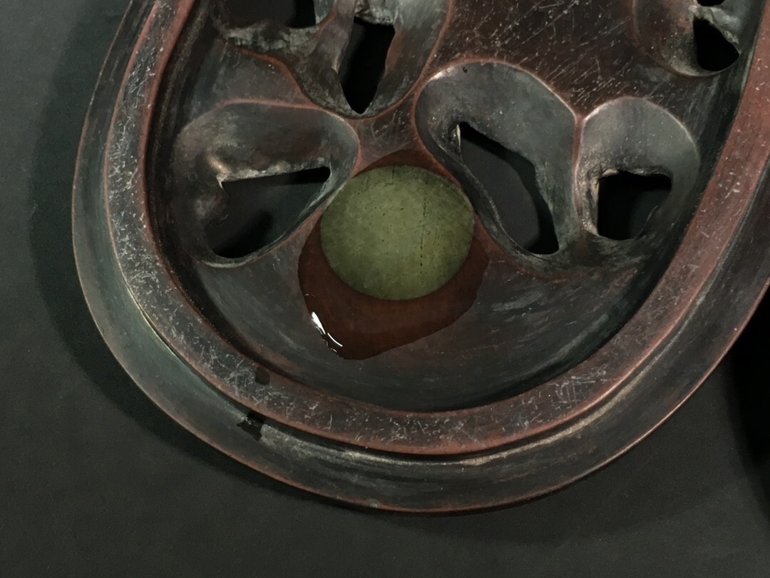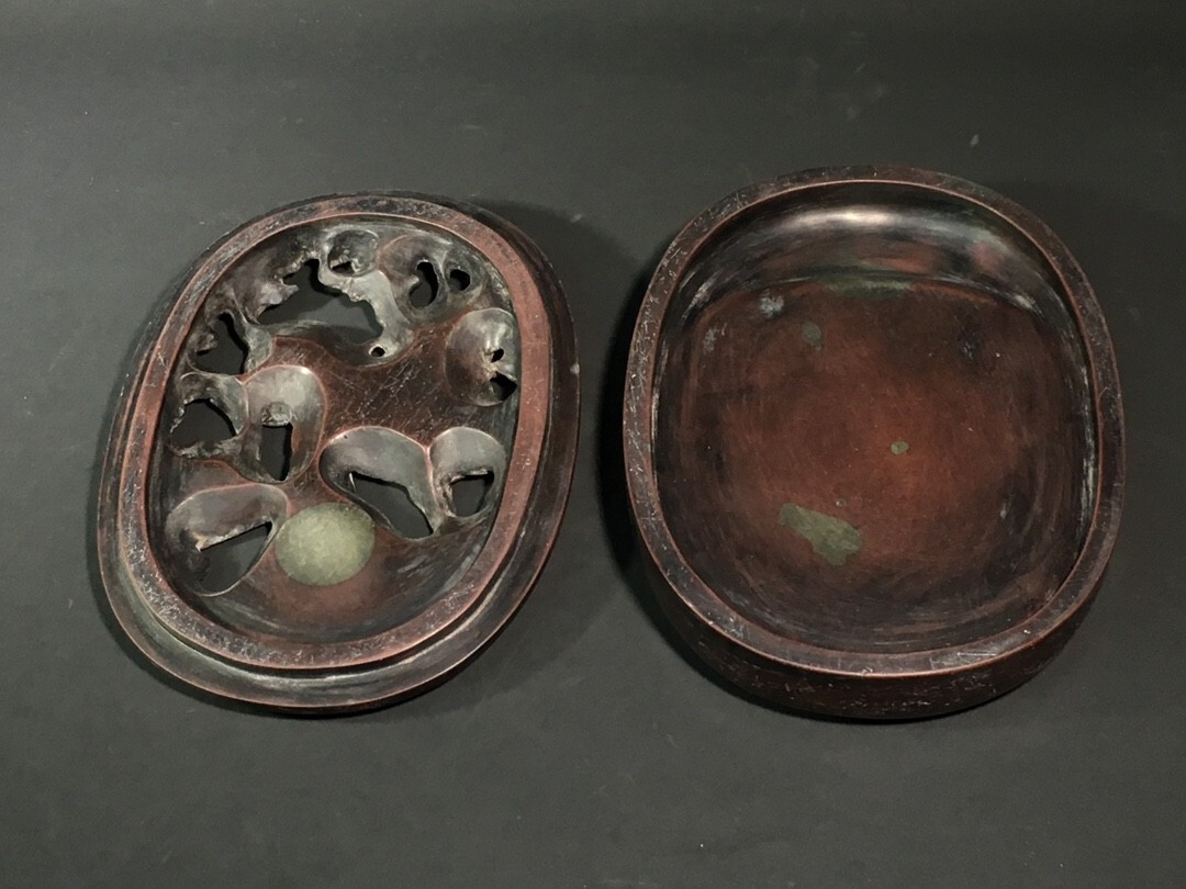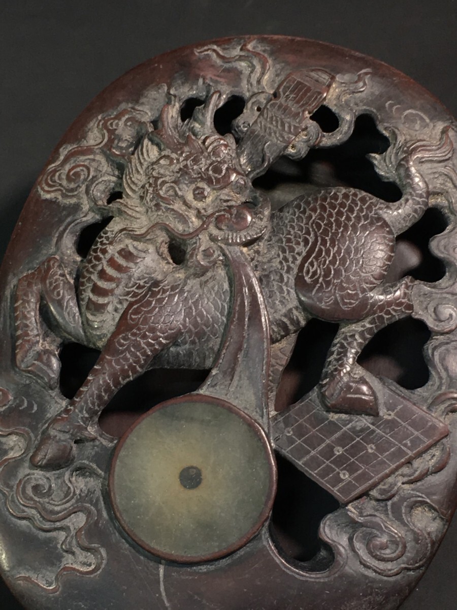 「古紫端石硯 麒麟吐珠文房端渓蓋硯 林召棠銘 清時代」手彫り 文房四宝 書道具 中国古美術 旧蔵出