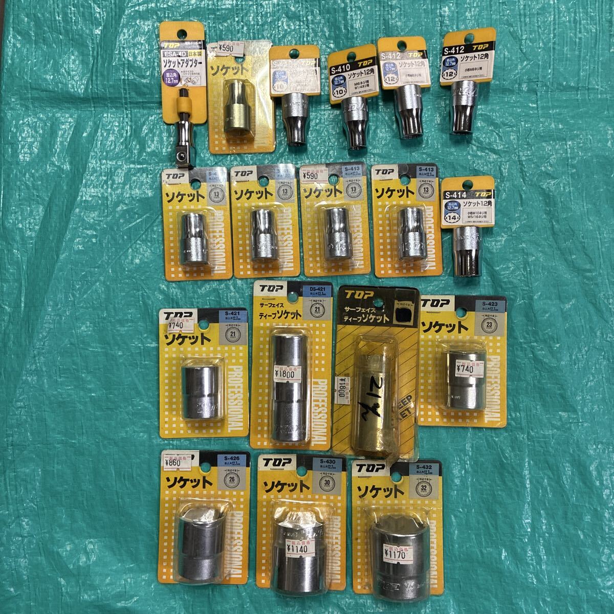 TOP、インパクト対応ソケットアダプター12.7mm、ソケット12角8mm1個、10mm2個、 12mm2個、13mm4個、14mm1個21mm1個、ディープソケット21mm2個、23mm1個、26mm1個、30mm1個、32mm1個、セット、未使用、保管品です。パッケージに汚れや黄ばみが見受けられます。写真8枚目の21mmディープソケットにはパッケージに破れがあります。ノークレーム、ノーリターンでお願い致します。>(2025年 8月 30日 15時 12分 追加)>差し込み角、12.7mmのソケットレンチにも対応しております。